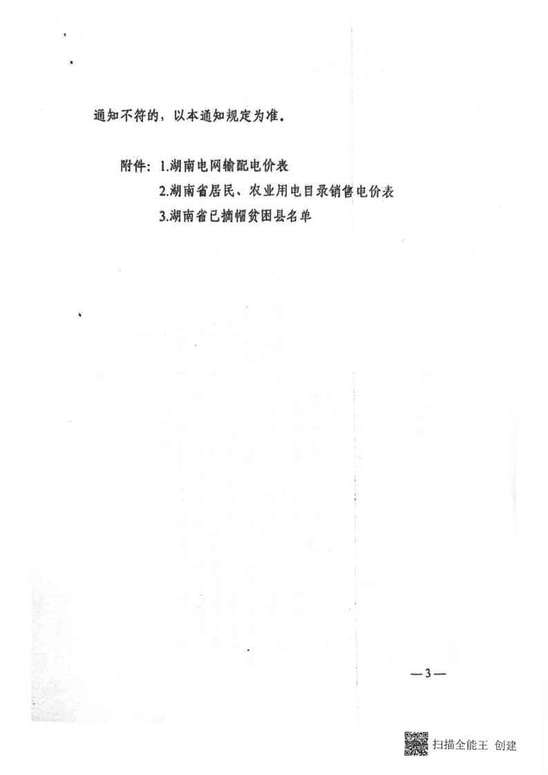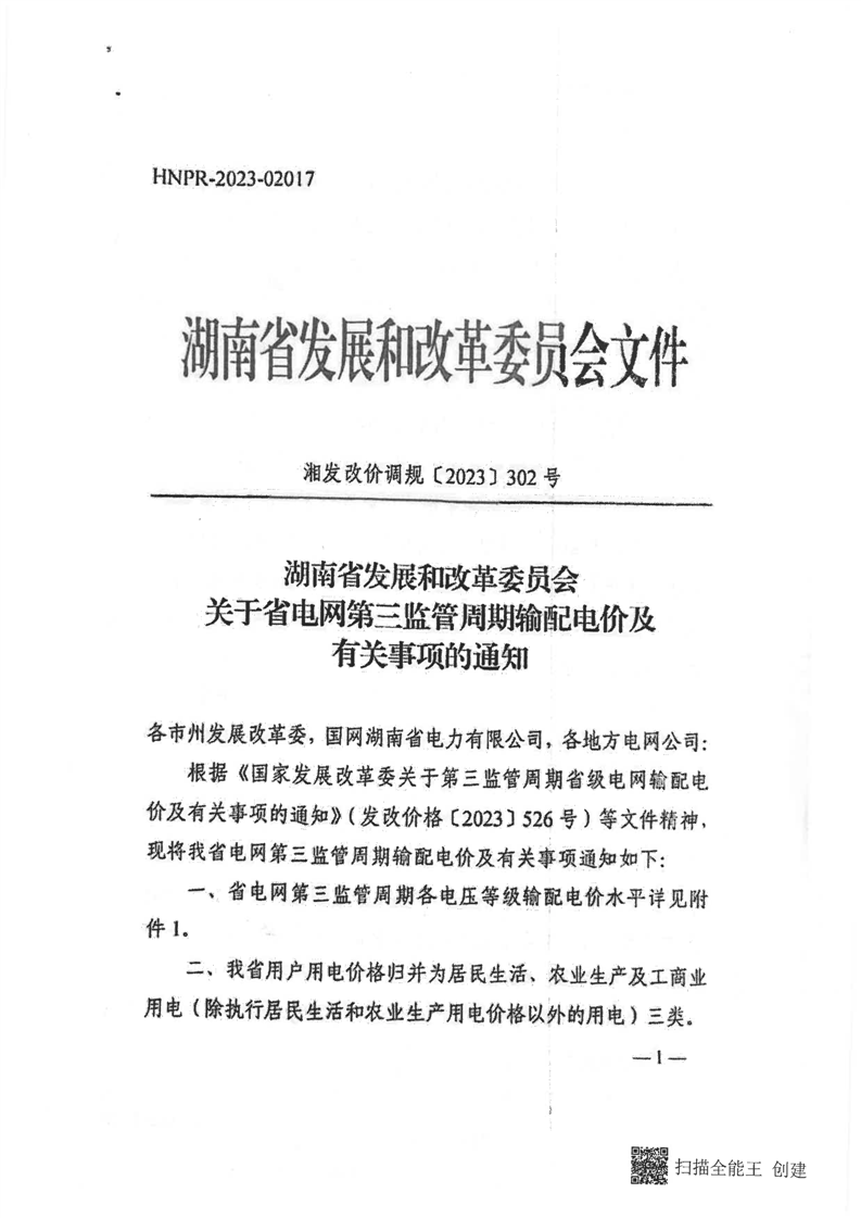 湖南省发展和改革委员会关于省电网第三监管周期输配电价及有关事项的通知