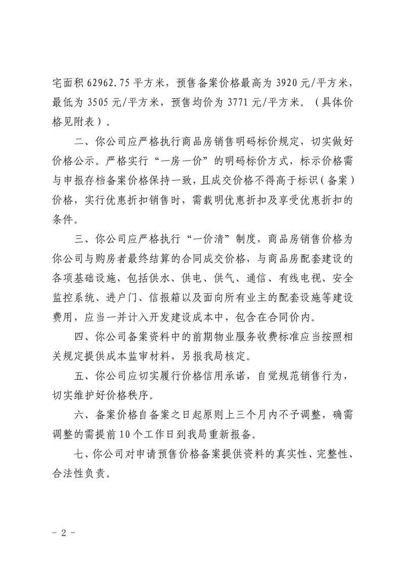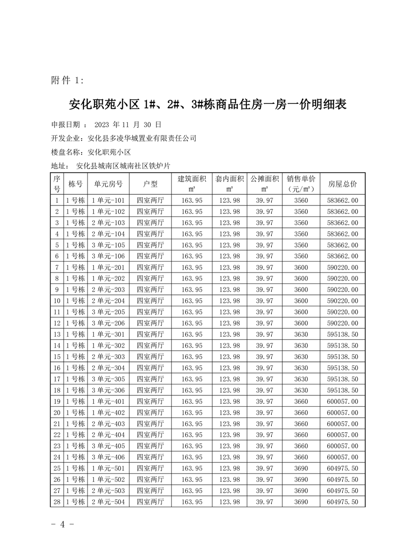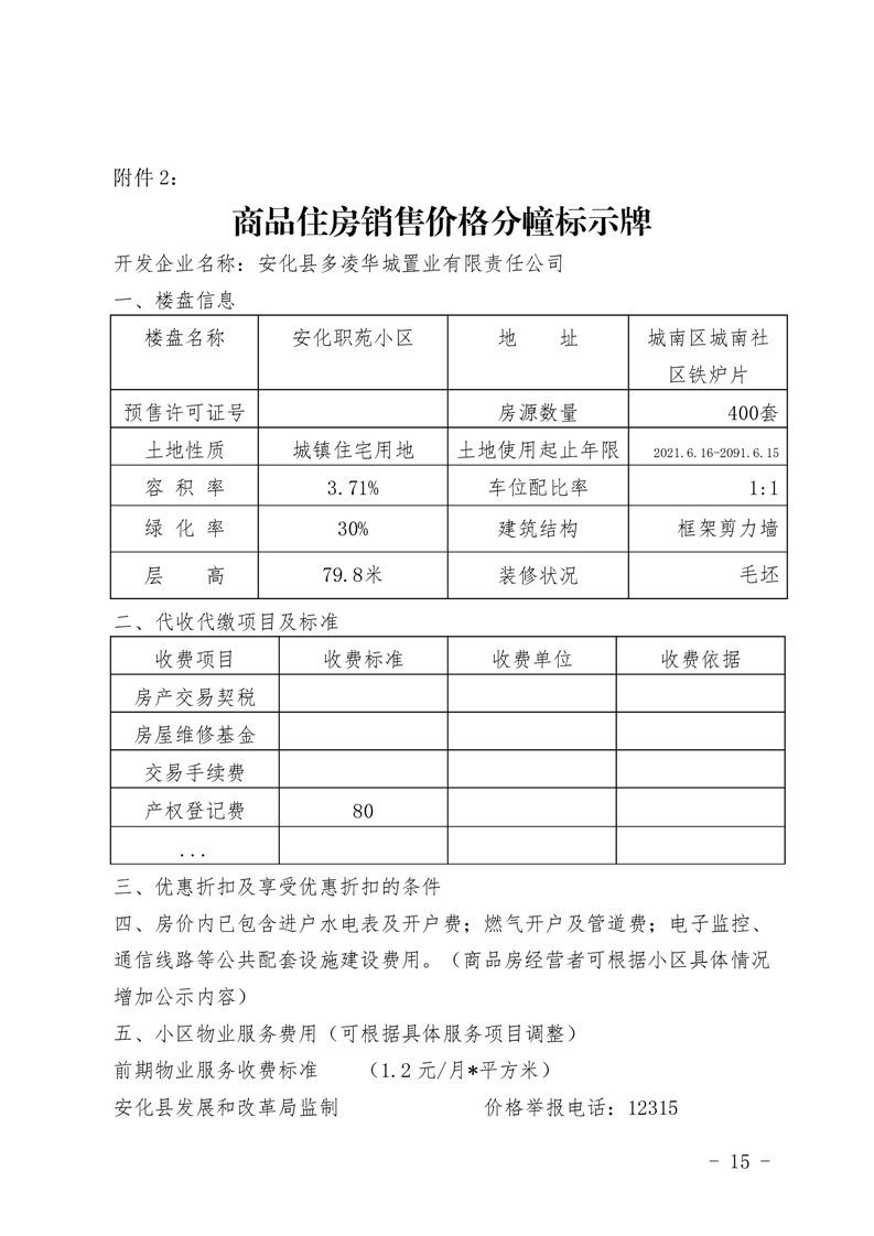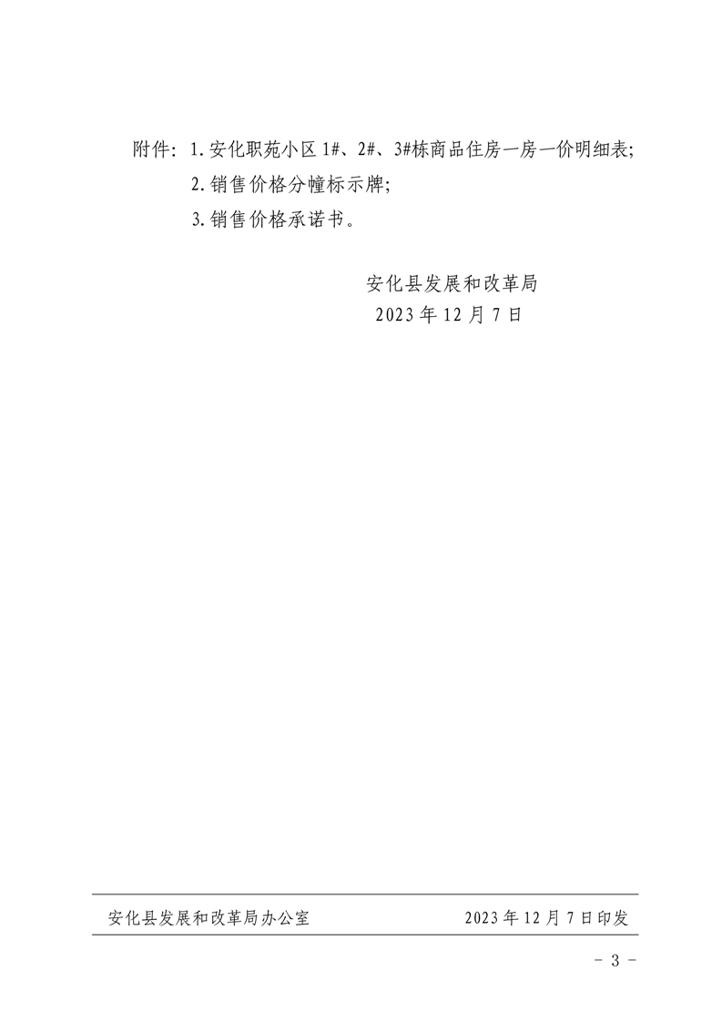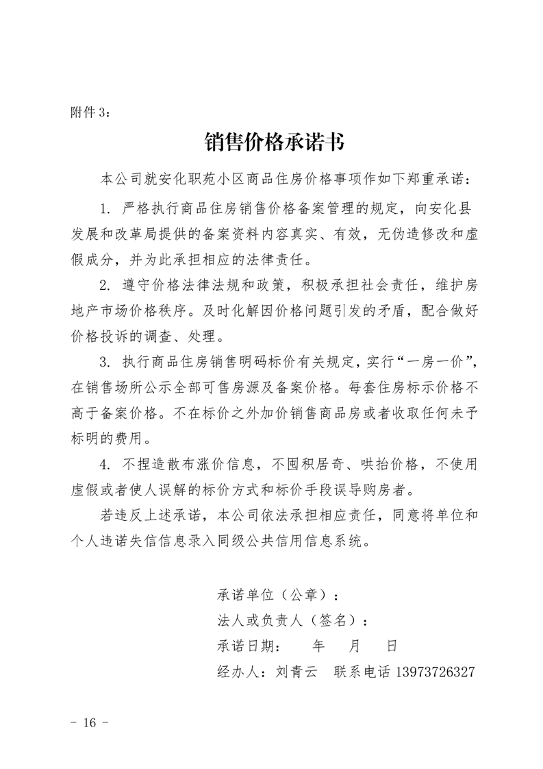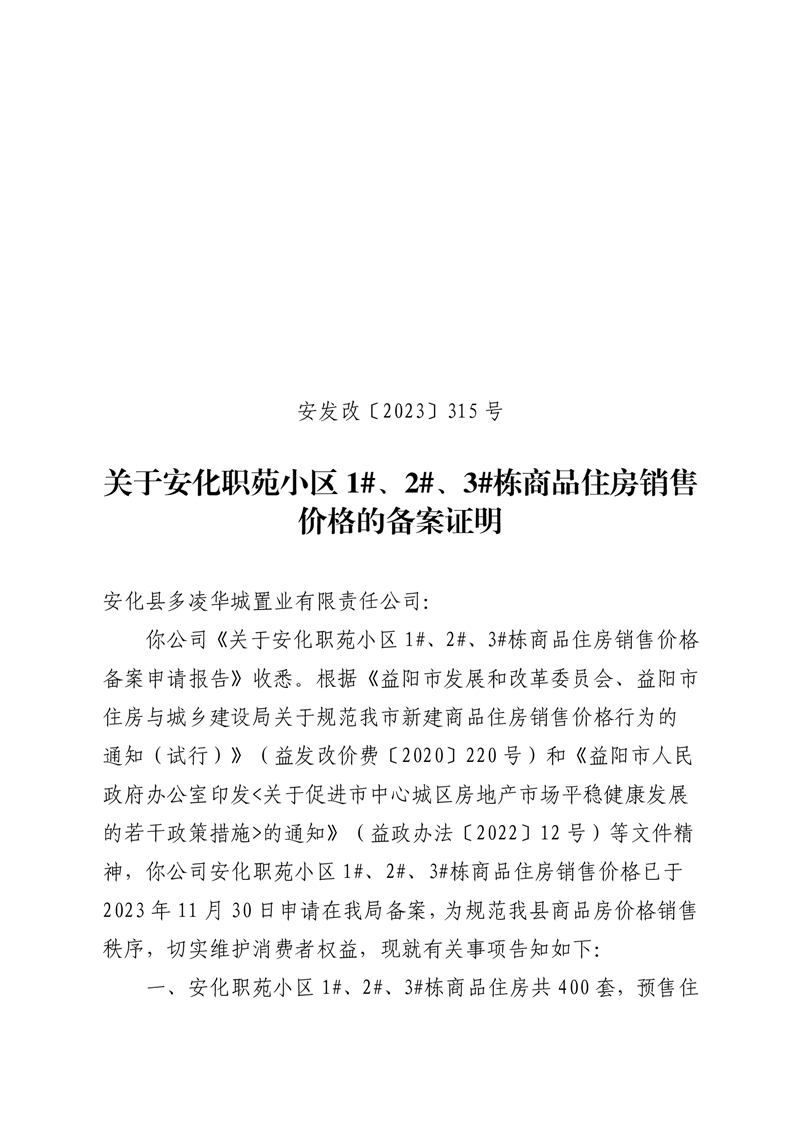 关于安化职苑小区1#、2#、3#栋商品住房销售价格的备案证明