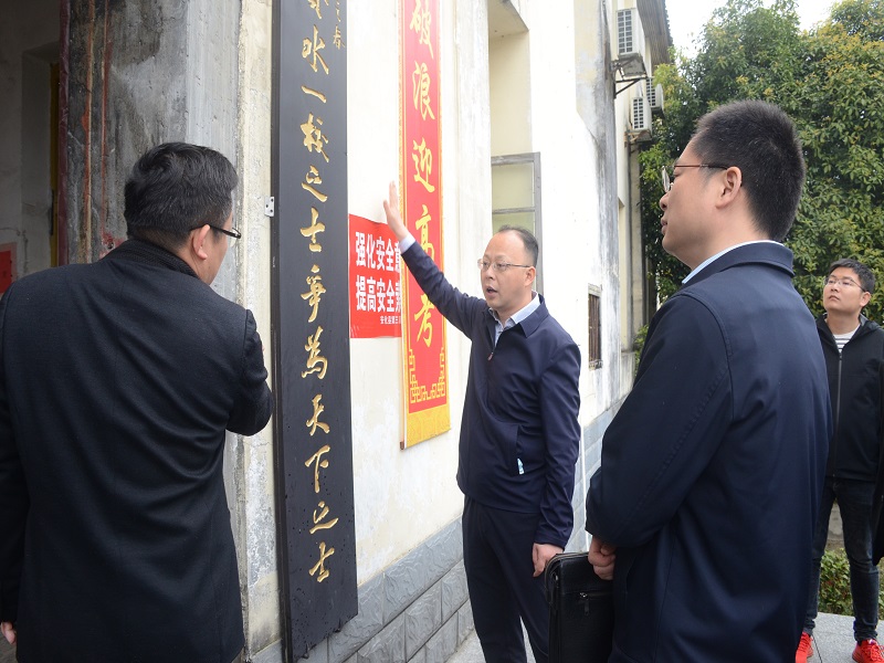 本网讯 3月31日上午,县委书记刘勇会、县委副书记周登高、县委常委宣传部部长林英、副县长伍亮一行到安化三中就陶澍故居修缮保护工作开展调研,财政局、教育局、文旅广体局、林业局、小淹镇政府、陶澍研究会、安化三中等主要负责人参加调研活动。 刘勇会一行入校便详细察看校园环境,参观了百年玉兰、文化走廊等特色景致,对古建筑陶澍官邸的情况及现有文物进行了全面了解。调研过程中,刘勇会就校内文物保护提出了指导性意见,强调保护工作要明确定位、尽早规划,做好具体策划后再分步实施,把握重点难点,能做的事马上做,做了的事要做好。同时根据实际情况,指出校园建设要与故居文化特色相融合,既能体现功能性又能达到文化传承保护工作的需求,为学校建设和发展指明了方向。