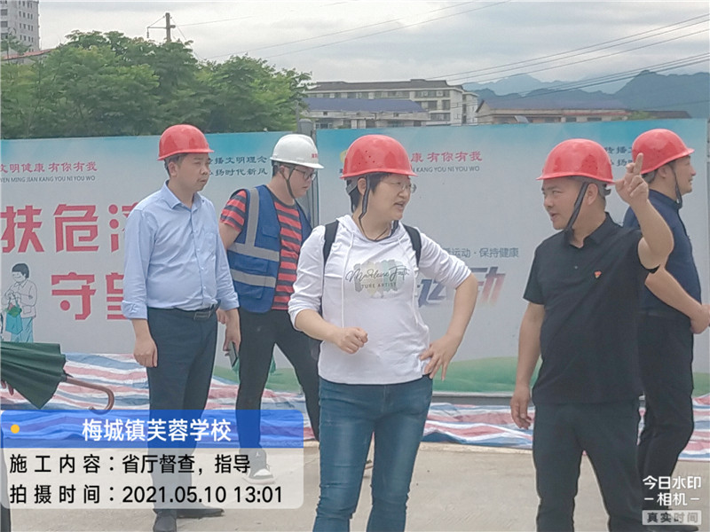 本网讯 5月10日,安化县梅城镇芙蓉学校迎来了省财政厅科教处副处长张丽、省教育建筑设计院总建筑师周磊、省教育厅改薄办赵建军等领导组成的联合督查组指导工作。市县教育局、财政局,梅城镇党委、梅城镇中心学校等相关领导陪同。 督查组一行先到现场详细察看了工地建设情况,随后查阅了相关的建设资料,听取了该校校长王吉阶的汇报。督查组指出,芙蓉学校项目作为省重要民生工程,对于化解大班额,保证教育均衡是一个有力保障,各方一定要确保施工质量;同时各方务必“干”字当头,“实”字托底,掌握时间节点,争抢进度,在6月底工程全面竣工,向党的100周年华诞献礼。 督查组对梅城镇党委、政府将于9月1日前完成梅山大道南线扩建工程,给学校正常开学营造一个良好的外部环境给予充分肯定!