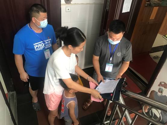 本网讯 8月6日晚,为开展“千名干部进网格、防疫服务到万家”行动,县教育局党组书记、局长刘唐业连夜部署,紧急抽调57名干部职工分批次到东坪镇、县城南区管委的相关社区开展防疫防控工作,对县城区域展开“地毯式”排查,将“敲门行动”温馨提示进行到底。 7日早上8点,县教育局首批以伍秋来、黄卫东两位同志任命组长的十二名志愿者参加培训后,听令而行,心手相连,共担使命,切实为人民群众办实事。本着便民惠民、社区吹哨、部门报到、网络化大覆盖的原则,将城南大城片区的六至七组和城北建设社区的住户一一询问,检查 “三码”、疫苗接种、近期出行、家人摸底等情况对表落在实处,让群众消除顾虑、安心在家,减少流动,抽调的同志认真负责,确保防疫服务进家入户,给居民朋友们注入一支“强心针”,切实做到“六大”:疫情防控政策指令大宣传、督查居民个人防护的大引导、城区疫情防控风险大排查、疫苗接种的大促进、发挥党员先锋岗的大展示、落实加强群防群控的大预演。 “感谢县教育局送来的关心问候,有你们这样的好干部我们很有‘安全感’,祝你们工作顺利,身体健康!”在船山小区周末正在家里带娃的一名妈妈开心不已。志愿者们挥手致谢,骄阳似火的天气依然将工作开展有条不紊。走街串巷、挨家挨户,根据区域、楼栋分工明确、提高办事效率。