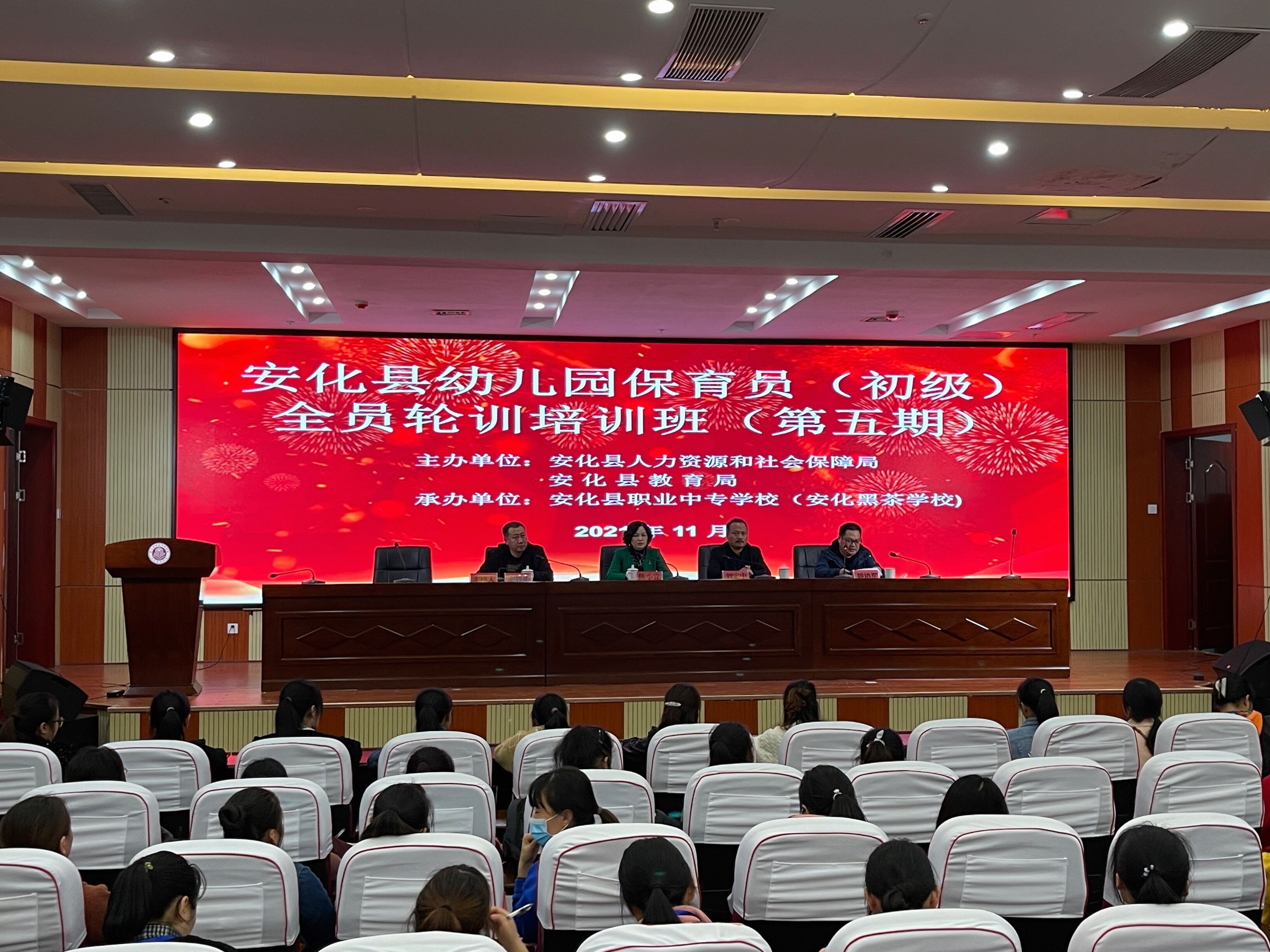 本网讯 橙黄橘绿,应是学习好时光。11月5日晚上7点,在县职业中专学校(黑茶学校)的会议厅,一场别开生面的开学典礼正在进行。这是安化县首届保育员全员轮训的最后一期,参加此次培训的学员有166人,大多数是库区片的幼儿园保育教师,主要来自马路、奎溪、烟溪、渠江、平口五个乡镇的幼儿园。 此次培训是由安化县人力资源与社会保障局、安化县教育局主办,安化县职业中专学校(安化黑茶学校)承办。培训时间一共7天,住宿和用餐全部免费,每人每天发放20元的生活补贴。培训内容包括理论学习和实操考试,课程设置包括理论和实操,其中理论课程有:职业道德与法规、幼儿健康、幼儿生理发展、幼儿心理发展、幼儿教育学、幼儿营养与膳食调配、幼儿常见疾病的预防等。培训结束以后通过考试考核,由人社部门发放保育员初级证书。 乡村振兴,教育先行。教育质量要提升,师资力量是最关键的因素。“师资力量薄弱怎么办?”这是县域学前教育的一大难题。为了进一步规范我县幼儿园办园行为,落实幼儿园园长、教师定期培训和全员轮训制度,稳步提升保教质量,切实提高从教人员专业水平和科学保教能力,我局从2020年11月起,对全县各乡镇保育员开展培训工作。至2021年底,已有东坪镇148名保育员取得了保育员证书。2021年继续开展此项工作,分5个批次对全县保育教师轮训一次,全县共有600多名保育教师参加,基本实现了全县幼儿园保育教师全员持证上岗。 据了解,安化县教育局通过多方借力,资源整合,组织了多种形式的学前教育队伍培训:一是积极向益阳市教师发展中心申报,组织进行了58名幼儿园园长和业务园长的任职资格培训,均已取得园长任职资格证书,为学前教育的管理队伍积蓄了后备力量;二是通过主题研训和区域研训的方式,对全县学前教育教师进行培训。内容包括全县游戏活动和幼小衔接的主题培训,全县青年教师素养大赛,区域新教材培训、表演游戏研讨、区域游戏研讨、户外游戏研讨活动等。通过多种形式的研训,促进教师的专业成长,推进我县游戏试验的深入研究;三是密切与安化县卫生健康局以及县级保安公司联系,加强保健医生和保安的培训,做到持证上岗。在每年的年检中进行监督与落实,规范管理。 2021年,安化县被确定为省级游戏活动实验区后,不断加强教师培训,构建研训长效机制,完善研训体系,更新教师理念,聚焦解决实际问题;放手让幼儿自主游戏,游戏实验更加全面、更加深入,更加精彩;幼儿园因地制宜,积极探索符合县域实际、具有地方特色的游戏活动,形成了一批特色鲜明的试点幼儿园。(通讯员 陈小宜)