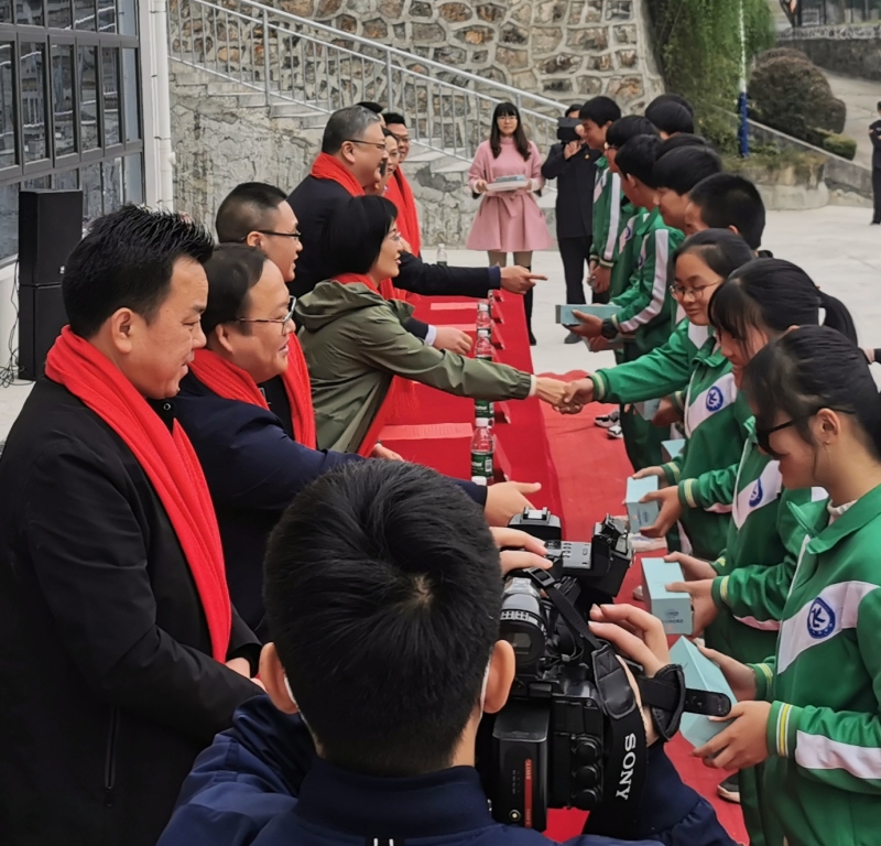 本网讯 11月16日下午,中国远洋海运集团董事、党组副书记王海民等一行在县人民政府副县长莫超等一行陪同下来到奎溪镇中学,参加中远海运奎溪镇中学体艺馆揭牌暨暖流保温杯捐赠仪式。