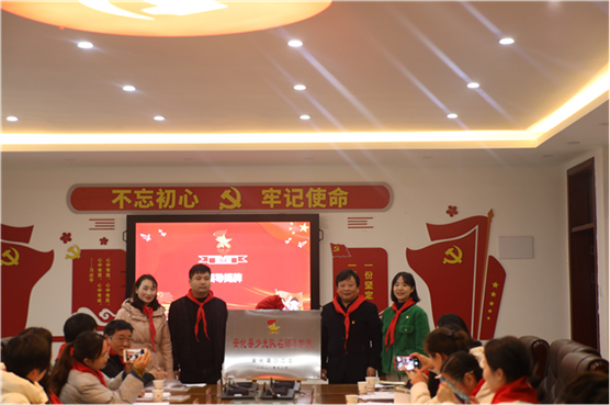本网讯 12月24日,安化县少先队名师工作室成立仪式暨业务培训在安化县第一芙蓉学校举行。共青团安化县委副书记、县少工委常务副主任卜乐,县教育局党组副书记、副局长邹友良,教育团工委书记李锦辉,东坪镇中心学校团委书记吴慧,安化县第一芙蓉学校党支部书记、校长廖耀南及全县20多名少先队骨干辅导员参加了此次会议。 冒着深冬的细雨,与会代表首先参观了第一芙蓉学校独具特色的党建带队建红色文化长廊、少先队活动室、校园广播电视台、中队角等少先队工作阵地,观看了由青苗5中队展示的主题队会——《榜样,指引方向;理想,照亮未来》,欣赏了学校鼓号队的精彩表演。“青苗中队主题队会形式多样,特色鲜明,芙蓉鼓号队鼓号嘹亮,英姿飒爽,这样的少先队活动真是生动又精彩!”一位少先队辅导员在观摩学习后发出感叹。 在随后举行的安化县少先队名师工作室成立仪式上,廖耀南致欢迎辞,名师工作室带头人陈晨宣读了成立方案并汇报了学校少先队工作的基本情况;东坪完小大队辅导员赵思与梅城镇完小大队辅导员周亚平进行了少先队工作经验分享。在热烈的掌声中,卜乐与廖耀南共同为安化县少先队名师工作室揭牌并颁发聘书。 会上,卜乐提出三点希望:一是名师工作室的成员要加强理论学习,二是加强少先队专业化建设,三是强化名师工作室的示范辐射作用。邹友良提出三点建议:一是打造好一个品牌,二是建设好一个平台,三是发挥好一个作用。两位领导的发言给全县少先队工作指明了方向、确立了目标,为推动全县少先队工作的快速发展注入了强劲的动力。 领巾飘扬,领航出发!安化县少先队名师工作室的成立,对推动我县少先队工作队伍体系建设,发挥少先队名师的思想带队和专业引领作用,指导青年辅导员迅速成长,共同引领、辐射、带动全县少先队事业新发展有着重要的意义。相信在全体成员共同努力下,工作室一定会成为少先队工作交流的平台、少先队课题研究的高地和汇聚人才的洼地,为我县少先队事业的发展做出应有贡献。(通讯员 李锦辉 李韦奇 万扬)