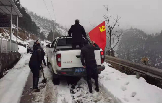 该村党支部纪委委员张弟凤、辅警谌文明带队,发动岩屋片区村民由里往外铲除积雪;田庄乡党委政府干部、村支两委和驻村工作队带着湘中片区村民由外向里推进。党徽、党旗点缀在银装素裹的大山深处,行人、村民纷纷参与进来。 一路上,有不少外来路过的车辆,不明情况上山,导致驶入积雪、陷在雪中、进退两难。党员干部和村民都热心地义务为其清雪,将车移出、劝其返回。司机朋友们一个个喜笑颜开,连声道谢:你们村的村风真的不错,热心、团结,太感谢你们了。
