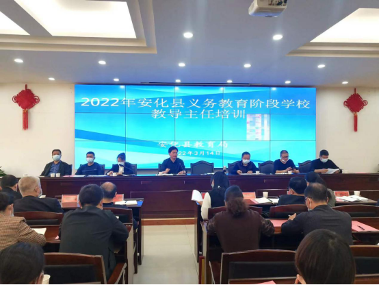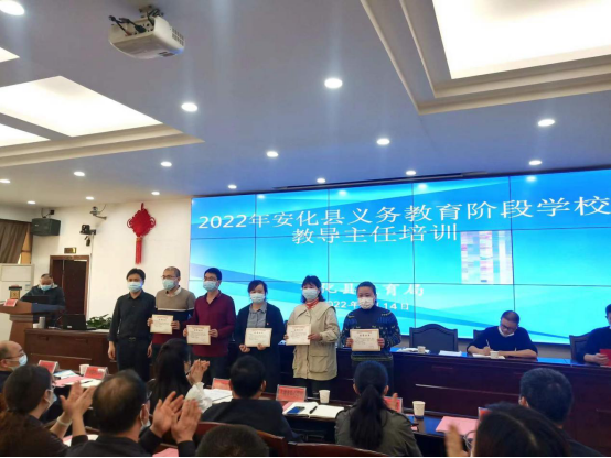 本网讯 3月14日,安化县2022年义务教育阶段学校教导主任培训在局六楼会议室举行。局党组成员、副局长李丰年出席会议,基础教育股股长黄共和、副股长黄志红等干部,全县义务教育阶段学校教导主任共160余人参加。 开班仪式上,黄志红宣读了《安化县教育局2021年阳光体育大课间活动比赛获奖通报》《安化县教育局关于2021年全县中小学优秀教导主任评选结果的通报》两个获奖文件,李丰年、黄共和分别给获奖单位与个人颁奖。县基础教育股三位同志在随后的培训中,就学籍管理、幼小衔接、“五项管理”“双减”、阅读、课后服务等相关工作做专题报告与培训讲座。 李丰年在开班仪式上就此次培训的要求、意义、目的、任务做重要指示与强调,他认为,在安化教育全力“提质增效”的大背景下,教导主任群体的成长与发展、教导主任工作的实效与有效,起着至关重要的作用,因此,他勉励大家要熟悉业务、踏实工作,勤恳敬业、好学上进,将“提质增效”落实到实际行动与工作中。同时,他就培训的相关内容提纲挈领地做了相关解读与指导。