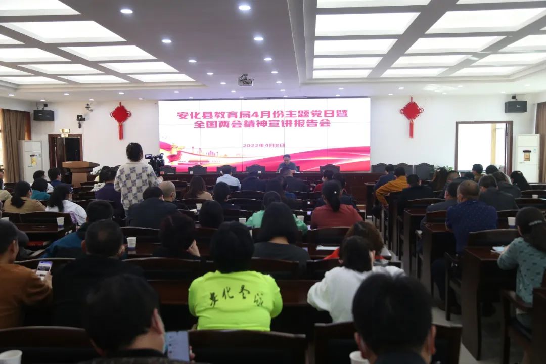 本网讯 “ 今天,肖支书上了一堂很好的十三届全国人大三次会议精神宣讲专题党课,我们要深入学习宣传,确保中央决策部署得到坚决贯彻落实。”县教育局机关第四支部党员在听取了第十三届全国人大代表、乐安镇青峰村党支部书记肖又香的《凝心聚力,奋进向未来》专题讲座后,进行了表态发言。 4月8日上午,县教育机关全体党员、干职工结合第十三届全国人大三次会议精神宣讲开展了4月份主题党日活动暨局机关政治业务知识学习。会议观看了党员教育微视频《周总理的浪漫家书》《中国抗疫中的“人民至上”》,组织学习了《安化县刹人情歪风,树文明新风专项整治工作方案》《关于加强新时代关心下一代工作委员会工作的意见》等文件精神。 肖又香就十三届人大五次会议精神做了《凝心聚力,奋进向未来》专题讲座。肖又香介绍了十三届全国人大三次会议召开情况,并对会议精神进行了解读,要深入学习领会习近平总书记系列重要讲话精神和政府工作报告部署要求,全力打赢三大攻坚战,确保高水平全面建成小康社会;要秉持秉承“百姓”情怀,坚持以百姓心为心,始终把“人民至上、生命至上”作为价值追求、责任担当,坚决兜牢基本民生底线,全力以赴办好群众关切的事情,不断增强广大群众的获得感幸福感安全感。 县教育局党组书记、局长刘唐业会上指出,不断强化“三个意识”,即纪律意识、服从意识、服务意识。会议要求,全体党员、干部要讲规矩、讲纪律,主动作为,强化担当,始终坚持党建引领,为开创安化县教育工作新局面做出积极的贡献。