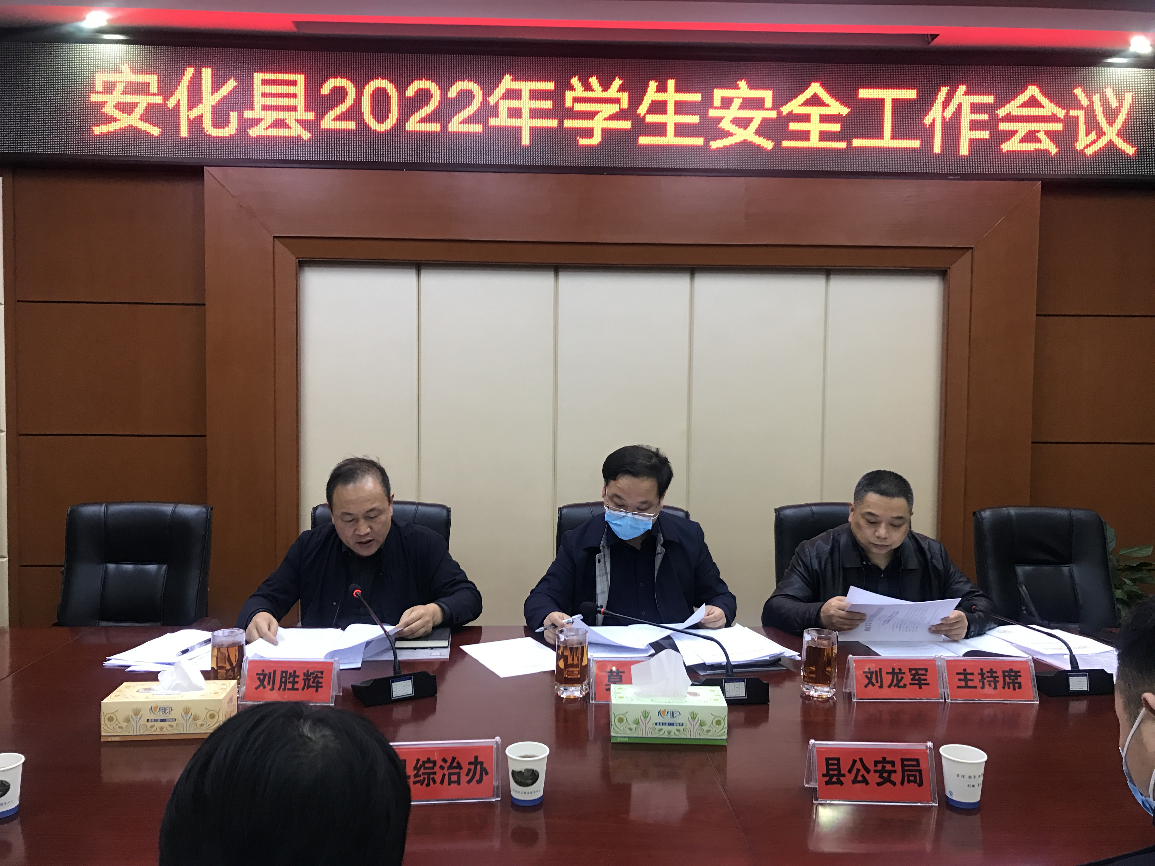 本网讯 4月15日,县人民政府办公室副主任刘龙军主持召开安化县2022年学生安全工作会议,相关县直部门和县教育局学生安全管理股、安化县教育校车安全服务中心、安化县教育后勤服务中心等近30人参会,县人民政府党组成员、副县长莫超出席会议并作重要指示,会议主要对学生校车安全、防溺水重点工作及存在问题进行调度分析,同时对下一阶段工作进行了安排部署。 会上,县教育局党组成员、副局长刘胜辉组织学习了《安化县学生安全专业委员会工作细则》(征求意见稿)、《安化县学生安全专业委员会2022年工作要点》(征求意见稿)、《安化县新冠肺炎疫情防控防治指挥部学校防控组工作方案》、安化县人大常委会转交《关于视察校车运行和校园食品安全工作情况的报告》等文件精神。 莫超强调,各单位要提高站位,深刻认识抓好学生安全工作的极端重要性,我县有13万余名中小学幼儿园学生,事关上万家庭的幸福,要把这项民生工作放在心尖上;要科学研判,全面排查学生安全管理存在的风险隐患,对道路安全、学生溺水风险、校园治安风险、疫情防控风险等做到心中有数,手中有策;要明确各行责任,明确时间和任务,明确考核制度,切实增强做好学生安全工作的紧迫感和责任感。 刘龙军进一步提出,要提早谋划,主动担当,齐抓共管,各部门密切协调,做好学生安全工作的各个环节,用努力工作的辛勤指数来换取人民群众的满意指数。