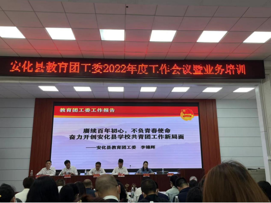 本网讯 4月25日,安化县教育团工委2022年度工作会议暨业务培训活动在安化一中举行,共青团安化县委副书记卜乐,安化县教育局党组副书记、副局长邹友良出席会议并讲话。县教育团工委第一届全体委员和各基层学校团委书记共80余人参加了会议。 会议由安化县教育局团工委副书记、安化一中党委副书记、副校长吴炜主持。安化一中党委书记、校长李远喜致欢迎辞。 县教育团工委书记李锦辉以《赓续百年初心,不负青春使命,奋力开创安化县学校共青团工作新局面》为主题作工作报告,总结2021年工作情况,部署2022年重点工作。安化一中团委书记夏君、东坪镇中心学校团委书记吴慧和平口镇中学团委书记史搏成分别作了典型经验发言,分享团队工作心得。会议还对2021年度学校共青团工作先进单位和先进个人进行了表彰。 会上,卜乐和邹友良代表团县委和县教育局,授牌成立了安化县首个中学共青团名团干工作室,安化一中团委书记夏君被聘为工作室带头人。 卜乐对名团干工作室的成立表示祝贺,对所做的工作给予了充分肯定。他提出要切实抓好青年学生思想引领工作,抓好团干部队伍专业化建设,抓好名团干工作室示范引领,凝心聚力、真抓实干,以优异的成绩向建团100周年和党的二十大献礼。 邹友良在会上强调,要高站位认识团队工作、高水平发挥示范引领作用、高标准推进团队组织建设。要坚持党建带团建、促队建,发挥好学校共青团、少先队的作用,围绕立德树人、培根铸魂的根本任务,用教育的情怀、奉献的精神,推动学校共青团工作再上新台阶。 会议结束后,与会人员还参观了安化一中爱国主义教育基地,并现场观摩了安化一中陶爱余老师《赤胆忠心战沙场,赴汤蹈火为民族》主题团课。(通讯员 宁辉杨 )