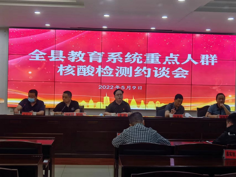 本网讯 5月9日上午,教育局六楼会议室召开了全县教育系统重点人群核酸检测约谈会。县人民政府党组成员、副县长莫超,教育局党组书记、局长刘唐业,教育局党组成员、副局长刘胜辉,县卫健局党组成员、副局长杨乐山出席会议。全县各普通高中、县职业中专、乡镇中心学校、江英学校校长及分管安全的副校长、防疫专干参加会议。县市监局、县住建局、县交通局、县商务局、市邮政安化分公司分管负责人列席会议。会议由政府办副主任刘龙军主持。 会上,刘胜辉通报全县教育系统重点人群核酸检测情况,指出“五一”假期以来,教育系统重点人群核酸检测工作开展不理想,必须加强对此项工作的落实。相关单位就有关情况作了说明,表示将积极推进重点人群核酸检测常态化工作。杨乐山介绍了重点人群核酸检测工作流程、全市考核办法及通报原则。 为扎实推进教育系统重点人群核酸检测工作,莫超提出了三点意见:一是要提高政治站位,正确全面认清当前疫情防控形势;二是要严格工作要求,从严从实做好重点人群核酸检测常态化工作;三是要压紧压实责任,继续做好学校疫情防控与安全工作。