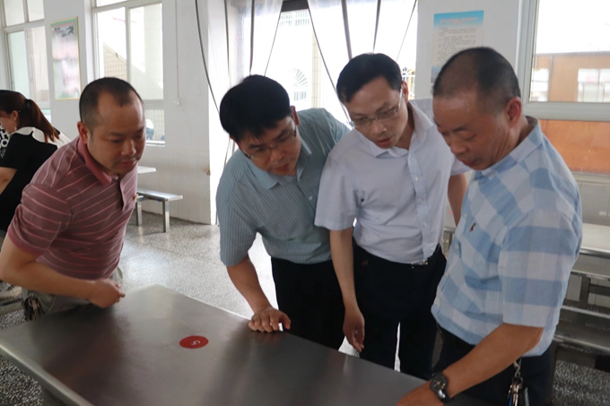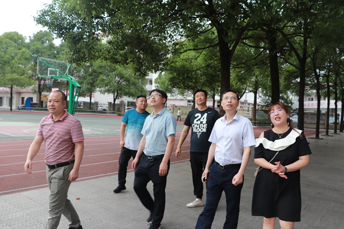吕诗永和杨华锋一行在该校部分行政人员陪同下,参观了校园文化墙,柳韵书廊,食堂,重点察看了亟待翻修的篮球运动场地。该校党支部书记、校长刘志慧就相关情况作了细致汇报。