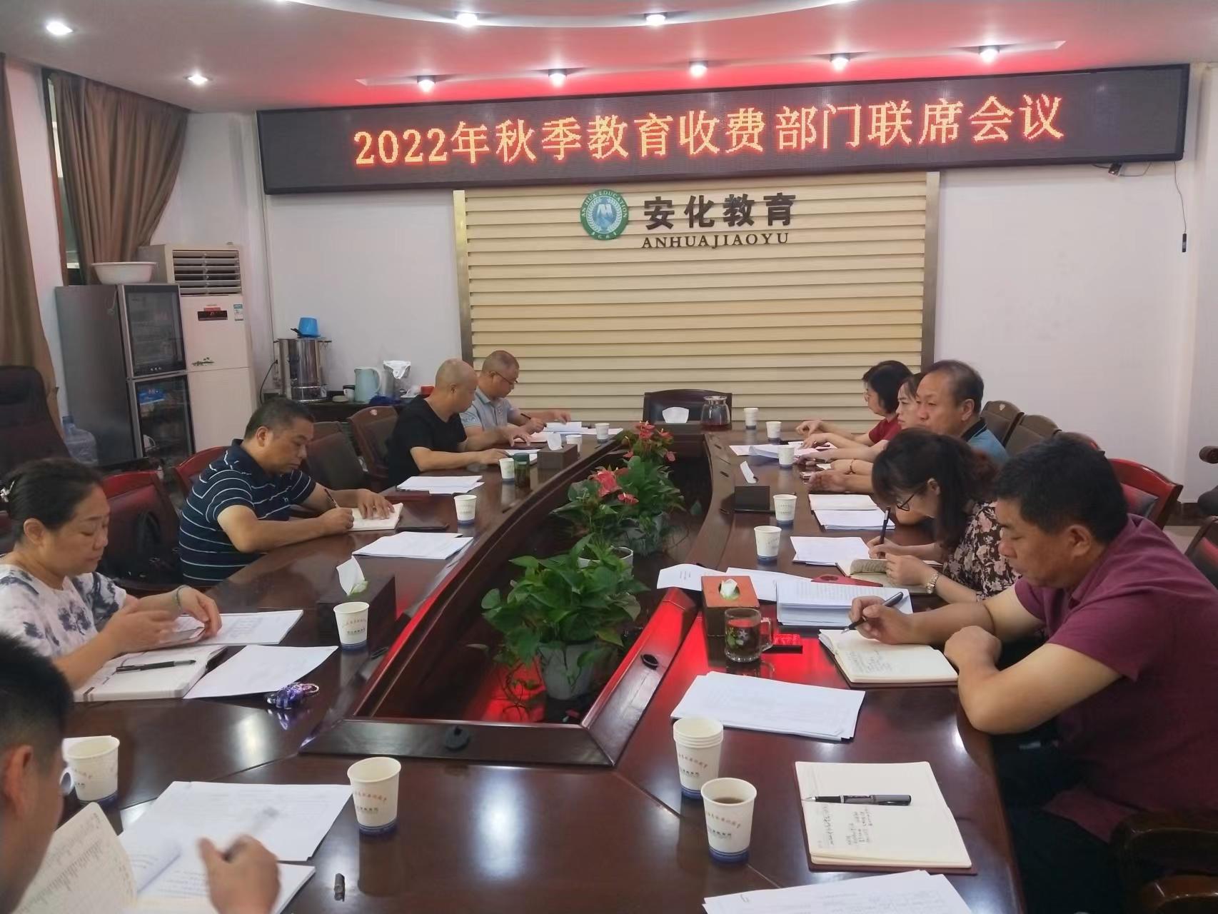 本网讯 8月26日上午,全县2022年秋季教育收费部门联席会在县教育局四楼会议室召开,县人民政府办公室副主任刘龙军、县纪委监委派驻县人民政府办公室纪检监察组组长曾恩志出席会议,县发改局、财政局、宣传部、减负办、市监局、教育局、新华书店相关领导以及县教育局办公室、纪工委、计财股有关负责人参加。 县教育局党组成员、副局长刘胜辉在发言中,总结了往年教育收费情况及存在的主要问题、解读了今年秋季教育收费政策新变化、提出了相关请求。 曾恩志强调,要严格按上级文件收费,要组成联合督查组开展督查,要公开收费政策、收费标准,要规范收费程序,要公布举报电话,确保教育收费政策落地、机制常态化。 刘龙军指出,教育收费关系千家万户,要高度重视,确保收费严格按政策执行;要对标对表,加强部门联动机制,全面规范我县教育收费行为;要畅通渠道,有针对地创造性地开展工作。