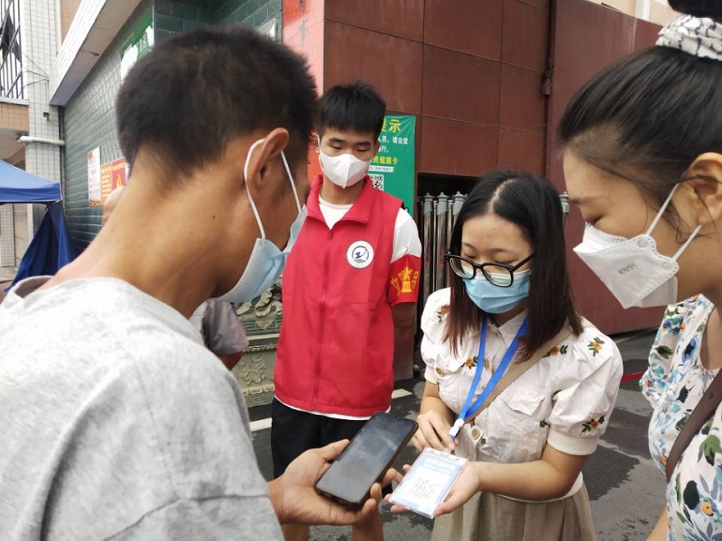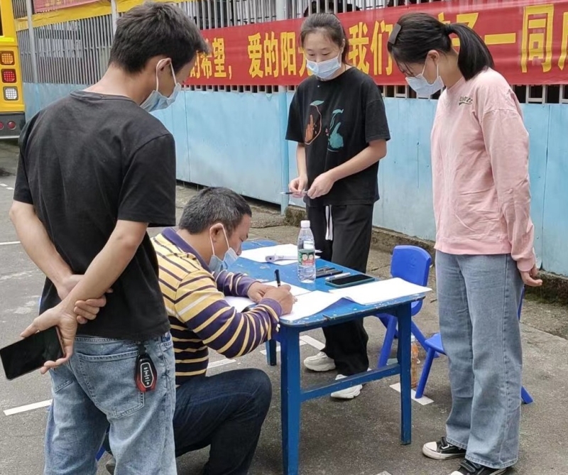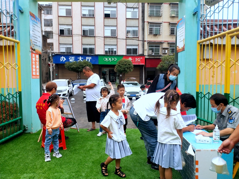 江南镇中心幼儿园:志愿者为幼儿开学入园报名保驾护航。