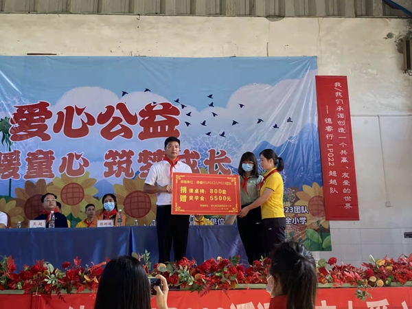 本网讯 9月5日上午,滔溪镇完小隆重举行“情暖童心·筑梦成长”爱心捐赠仪式。出席仪式的有安化长塘籍企业家陈虹媛女士、德睿行LP022、LP023团队代表,安化县人民政府党组成员、副县长莫超,安化县残联副理事长刘尚夫,滔溪镇党委副书记、镇长谢波等。安化县教育局党组副书记、副局长邹友良主持捐赠仪式。 仪式开始,少先队员为嘉宾和爱心人士敬献红领巾,滔溪镇中心学校校长刘忠致欢迎词。德睿行LP022、LP023团队代表介绍团队情况,向滔溪镇完小捐赠800套课桌椅,并向11名品学兼优的学生发放助学金。滔溪镇完小向德睿行LP022、LP023团队授爱心捐赠牌。 滔溪镇完小校长李仁致谢辞,他代表全校师生向爱心企业、爱心人士及长期关心该校发展的各级领导、社会各界表达诚挚感谢和崇高敬意。 谢波介绍滔溪教育发展情况,表示在上级党委政府、教育主管部门的正确领导和社会热心人士的大力支持下,滔溪教育近几年来学校硬件设施、校容校貌等方面都发生了很大变化,期待社会各界一如既往支持滔溪教育的发展,助力乡村振兴。 莫超指出,德睿行LP022、LP023团队和爱心人士的无私奉献,不仅为安化贫困学子送来了爱心大礼,也是对安化教育事业的关心。希望滔溪教育人要凝聚各方力量,切实加大投入,不断改善办学条件,提升教育教学质量。受赠学生要不负厚望,进一步加强学习,长大后能够接过爱心接力棒,回报社会。