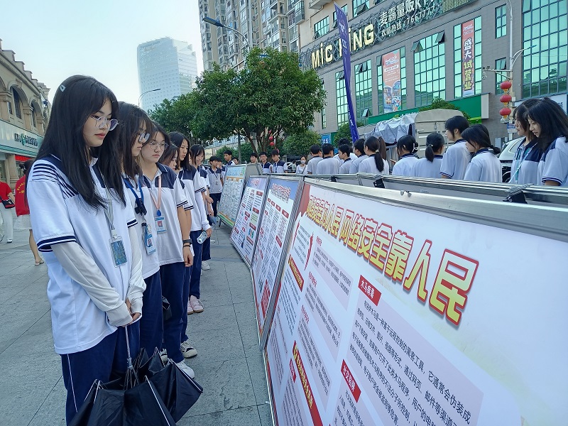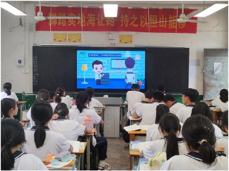 (县职业中专学校学生学习展板内容) . (安化五中组织学生观看网络安全教育宣传片)