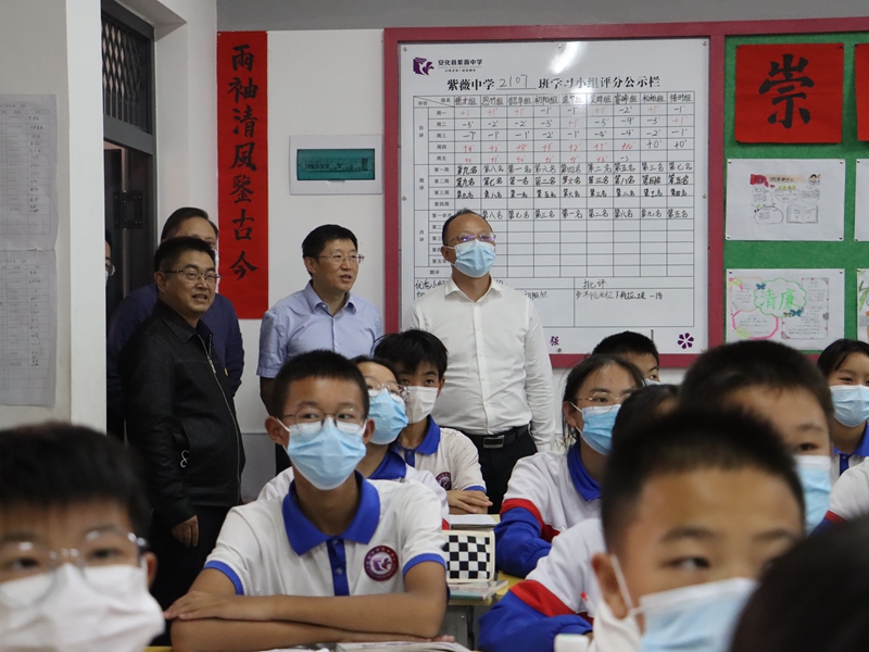 本网讯 10月25日下午,湖南省教育厅二级巡视员喻志松,益阳市委常委、市人民政府副市长刘勇会、益阳市教育局局长彭伟才一行深入紫薇中学就学校建设及办学情况进行视察。安化县人民政府县长潘文剑,县教育局党组书记陈羽成等陪同。 喻志松一行实地查看了紫薇中学的建设情况,详细了解学校现有的办学条件,包括占地面积、用地规划、办学规模、师资配备、办学特色以及拟建设的相关配套设施等方面的情况。并与学生亲切交流,询问班级的人数,了解学生在校学习生活情况。对该校的教学设施、办学成效和“立德启智,适性扬长”的办学理念给予了充分肯定。 喻志松指出,要继续完善校园建设,为师生提供更加优质的校园环境;要落实当前疫情防控工作,保障学校稳定和师生身心健康;要进一步加强学校管理,办好人民满意的教育。