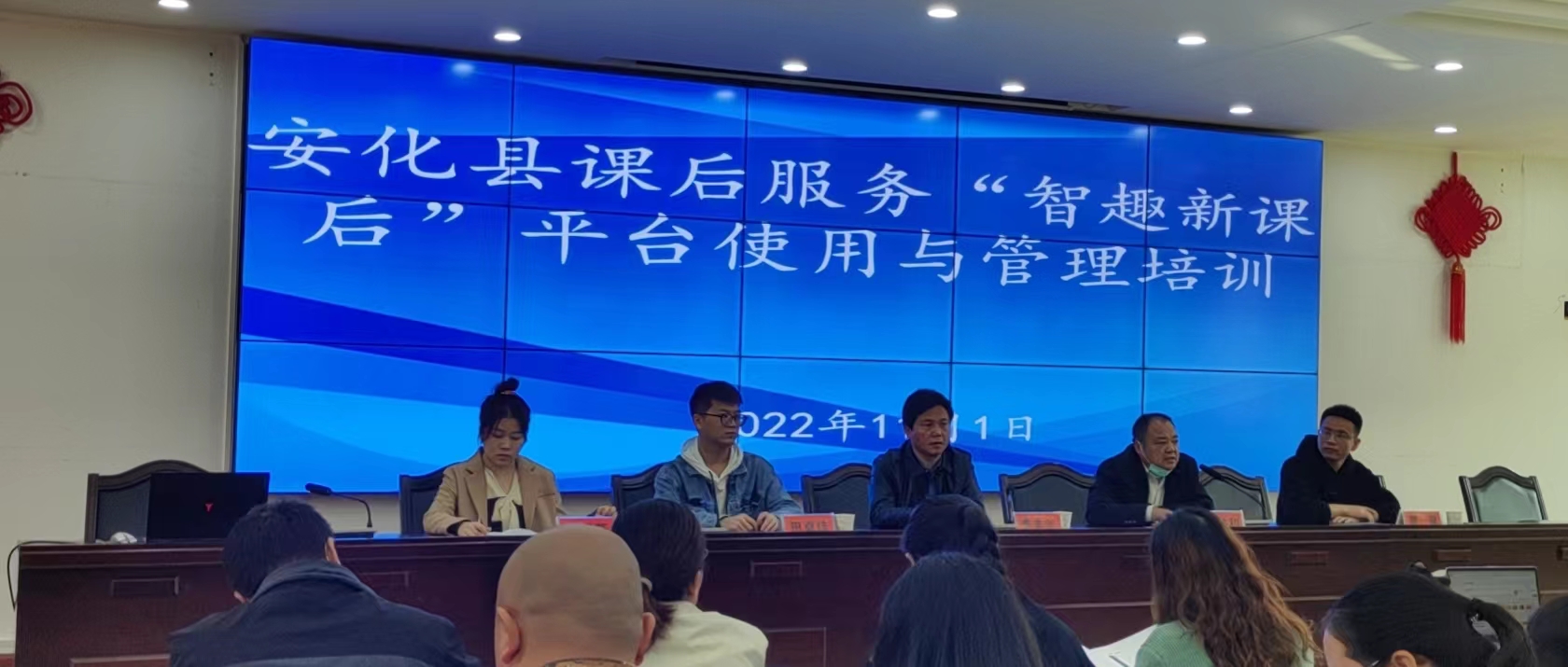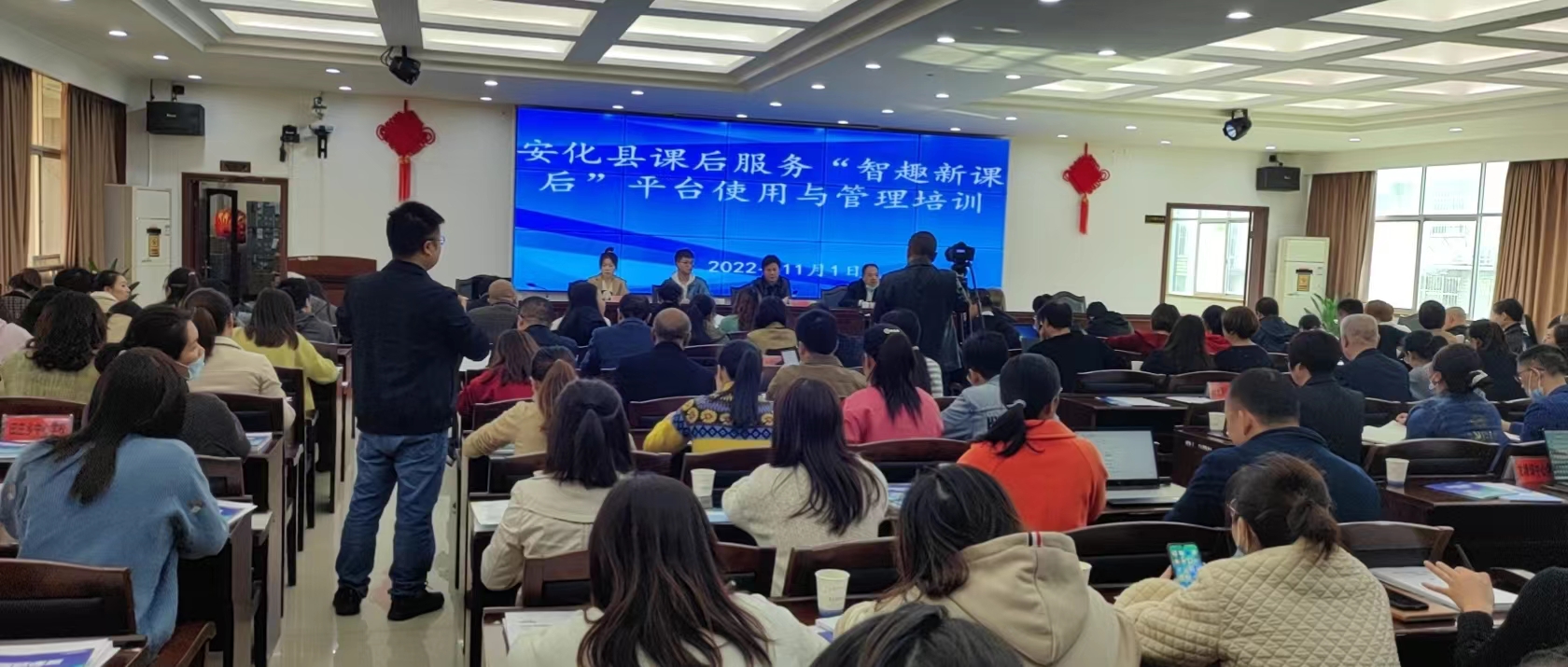 本网讯 11月1日上午,在县教育局六楼大会议室举办了安化县“智趣新课后”管理服务平台使用与管理培训。各乡镇中心学校业务校长、中小学校教务主任参培。县教育局副局长李丰年,中南传媒出版集团宣讲技术团队,县新华书店副经理蒋争艳、蒋建高,县教育局相关股室负责人参加。 李丰年在发言时指出了我县目前课后服务工作的开展情况和使用“智趣新课后”服务管理平台的重要性和必要性。他强调,“智趣新课后”服务管理平台的使用和管理工作,既是积极响应国家落实好课后服务的政策要求,又是当前农村学校搞好课后服务的资源保障,也是促进学生全面发展的有力支撑。该平台是一个全免费的平台,具有丰富的课后教学资源,不但能满足安化教育现阶段的实际要求,还能与国家智慧教育平台数据对接,为我们课后服务工作的规范、深入开展助力。同时,他要求各位老师担起自身职责,落实好“送教上门”工作。 中南传媒出版集团技术团队的三位专家对“智趣新课后”管理服务平台的整体背景、政策依据、操作指导等方面做了宣讲及现场演示。 县教育局基础教育股股长黄共和对“智趣新课后”服务管理平台在安化县全面推进提出了具体要求:力争在2022年底前基本实现校校全覆盖,落实“智趣新课后”管理服务平台和国家课后服务管理服务平台数据有效对接,深入推进“双减”工作。 本次培训由县教育局主办、县新华书店协办。