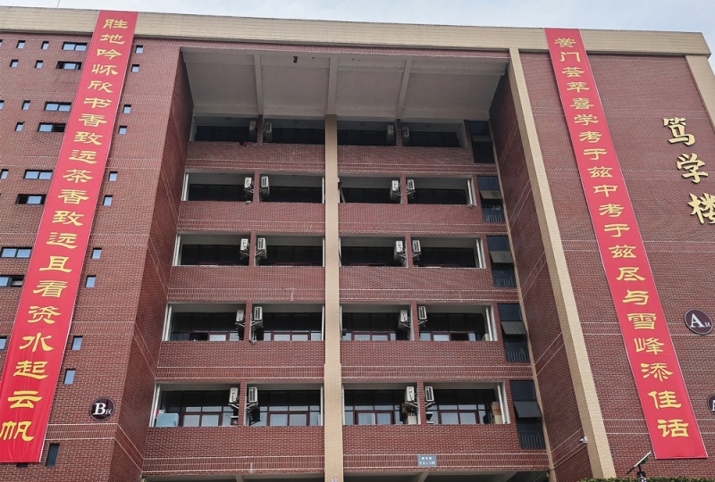 图:县职业中专考点学考对联。