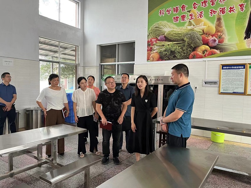 本网讯 9月11日,县委副书记、统战部部长李丰带队调研冷市镇完小食堂管理。 冷市镇完小校长曾向玲对上级领导一行人的到来表示欢迎,并介绍了学校后勤工作的相关情况,她表示上级高度重视中小学后勤工作全过程监管,学校始终以“政策引领、精准发力”为目标理念,坚持依法治后勤,推进后勤规范化管理。食堂主管王华玉围绕学校食堂的规范建设思路与举措、智能化管理等内容进行介绍;后勤主任陈笃祥简单介绍了学校信息化建设及后勤改革发展管理工作等内容。 调研组一行人实地察看了学校教室、操场、食堂等场所。全体干部深入爱心食堂,查看了主副食品库、调味品库、冷冻冷藏库、加工、消毒间、后厨,对食堂环境卫生、从业人员健康管理、食材和调味品、后厨设施设备安全等情况进行了全面检查。要求学校食堂巩固提升食品安全管理水平,多措并举筑牢校园食品安全防线。 李丰肯定了学校食堂开学工作准备充分,环境卫生情况良好,食堂从业人员精神饱满。要定期对食品安全关键环节进行风险排查,做好设备维护。要求食堂要进一步提高服务意识,提高餐品质量,做师生满意的食堂。