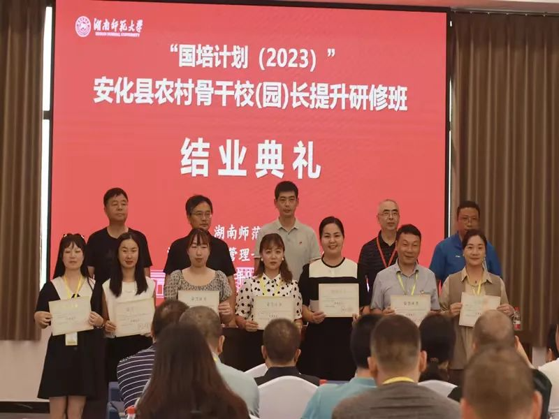 9月17日,“国培计划(2023)”——安化县农村骨干校(园)长提升研修班结业典礼在湖南师范大学举行。湖南师范大学中学校长和教师培训部副处长朱常青主持结业典礼,县教育局党组成员、总督学刘周明,安化县教育局人事股、教师发展中心相关人员,安化县80名农村骨干校(园)长参加结业典礼。 湖南师范大学中学校长和教师培训部处长康洪对本次培训的优秀学员、优秀班干部进行表彰。 ![]() 刘周明充分肯定了本次培训的形式、内容和成效,要求全体学员通过学习发现差距,寻找向上的力量,向着特色明显、质量优良、家长认可、社会满意的办学方向努力,把安化教育带到一个新高度。希望全体学员永葆教育初心,经常抬头瞩目前方,选择正确的道路勇敢前行。 黄沙坪完小校长刘颖作为学员代表发言,她表示,本次培训方式有专题讲座、名校访学、现场教学、学员论坛等,培训内容有思想、有温度、有智慧,给人很大的触动和启发,她号召在座的全体学员以此次研修培训为新起点,践行为党育人、为国育才的神圣使命,以实际行动为安化教育高质量发展作出贡献。
