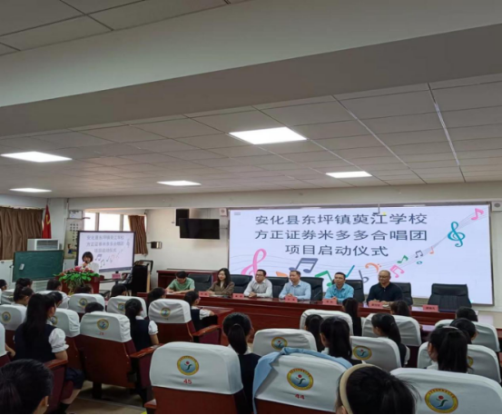 本网讯 10月16日,北京德清公益基金会“方正证券米多多合唱团”公益项目在东坪镇萸江学校正式启动,这是安化县继东坪镇完小、梅城镇完小“米多多合唱团”公益项目成功实施后的又一个落地启动的“米多多合唱团”公益美育项目。北京德清基金会行政总监张斌、项目负责人周畅,方正证券代表谌前,湖南城市学院艺术学院副教授易松,县教育局后勤服务中心主任唐祁安,东坪镇萸江学校校长罗正兵、教师代表及学生代表参加了启动仪式。 据悉,该项目由湖南方正证券汇爱公益基金会出资,北京德清公益基金会设计,东坪镇萸江学校负责落地执行的三方合作共建公益项目,旨在改善学校音乐与合唱教学条件,提升音乐教师专业水平,让孩子们在合唱团中快乐成长、快乐歌唱。 启动仪式上,东坪镇萸江学校校长罗正兵致欢迎辞,并介绍了学校的办学理念、办学特色以及学校合唱团的发展历程,他表示学校一定要借合唱团项目落地的东风,推动学校音乐教育的发展,将音乐教育变成学校素质教育的重要引擎之一,进一步推动学校美育工作迈向新的台阶。 张斌介绍了项目共建内容,湖南方正证券汇爱公益基金会代表、北京德清公益基金会与东坪镇萸江学校签署了三方共建协议书,方正证券安化营业部总经理助理谌前为项目合作学校授牌,张斌为项目受聘教授颁发了公益聘书。项目受聘教授易松为该校“米多多合唱团”进行了精彩的授课指导,同时对合唱团的建设发展提出了建议,勉励教师加强专业学习,团结互助,整体提高合唱素养,提升音乐学科和合唱整体水平。