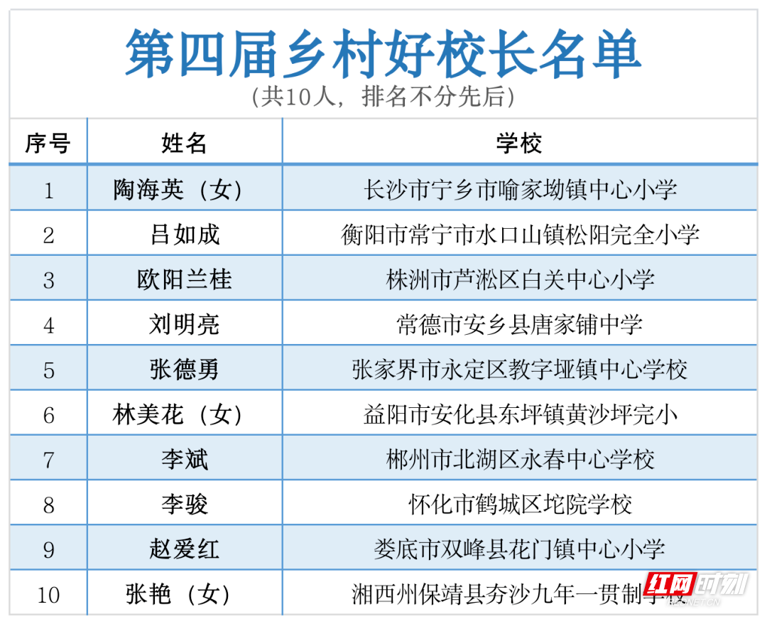 12月11日,湖南第四届“乡村好校长”名单正式公示,安化县东坪镇黄沙坪完小原校长林美花获评湖南第四届“乡村好校长”称号。