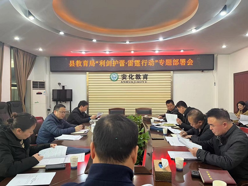 本网讯 12月25日,县教育局召开党组扩大会议,专题研究“利剑护蕾·雷霆行动”相关工作,县教育局全体班子成员,相关股室负责人参加会议。 会议传达学习了省、市、县关于“利剑护蕾·雷霆行动”会议精神,审议通过了《安化县教育系统“利剑护蕾·雷霆行动”实施方案》,对下阶段工作进行部署安排。