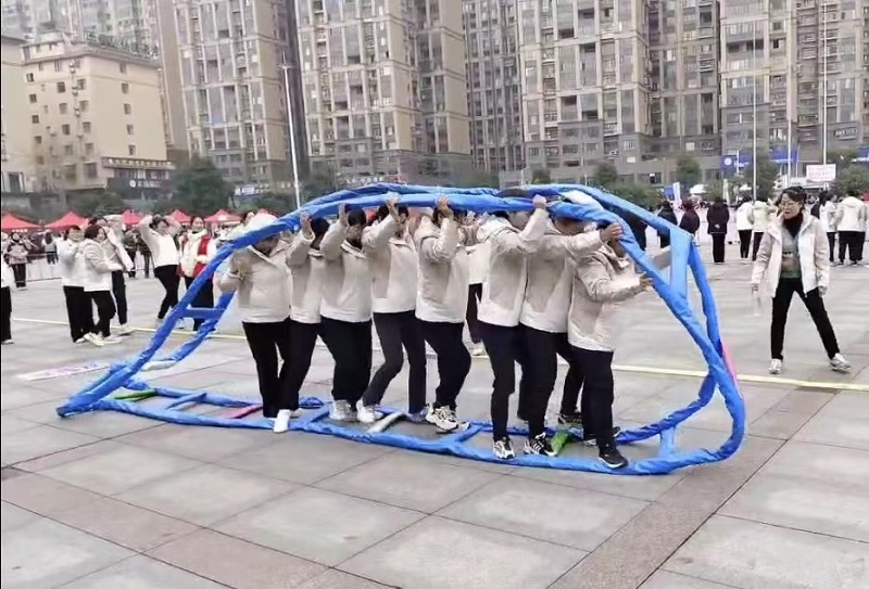 本网讯 “加油!加油……”3月7日上午,在安化县陶澍广场上,趣味运动会“财源滚滚”比赛正在进行,安化县教育局一队的参赛选手们喊着口号、整齐踏步,用力摆动手臂向前快速传送履带,引得现场观众连连叫好。