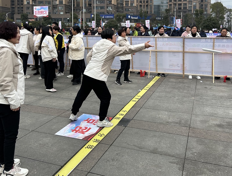 本次全县庆“三八”女职工趣味运动会,共设置四个集体互动游戏,包括“财源滚滚”、趣味飞盘、“十拿九稳”、“摸石头过河”。来自全县各乡镇妇联和各机关事业单位妇委会组织的80余支队伍1600余人参与其中,县教育局派出2支队伍共35人参赛。 运动会中,教育“女战士”热情投入、奋勇拼搏。趣味飞盘项目中,大家全神贯注,调整出手姿势,力求击中最高积分;“十拿九稳”挑战中,队员们默契配合,抬起超大球拍,一路疾驰向前;“摸石头过河”比赛中,队员们巧用战术,手脚并用争分夺秒,快速接力……活动现场掌声、笑声、喝彩声此起彼伏,快乐洋溢在运动场上的每一个角落,整个赛场气氛紧张又热烈,温馨又愉快。运动会后还进行了5轮抽奖与有奖竞答,全县女职工不仅享受到了运动的轻松与快乐,也感受到了节日的温馨与幸福。