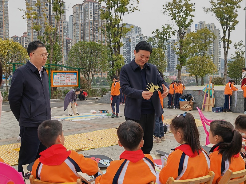 本网讯 3月22日,在绿意盎然的安化县滨江客厅,一场别开生面的户外美术课正在热烈展开。此次活动由益阳市政协、安化县政协、安化县河长办、安化县团县委、安化县教育局等单位联合举办。 活动中,城南完小的学生们手持画笔和纸张,满怀热情地投入到这场以“珍爱水资源”为主题的手抄报、绘画比赛中。他们或蹲或坐,或专注描绘,或凝神思考,用稚嫩的画笔勾勒出一幅幅生动的水世界图景。学校绘画社团和手工社团的同学们更是发挥了他们的创意和想象力,创作出形式多样的美术作品,每一幅作品都充满了对保护水资源的责任与担当。 活动现场,市政协副主席李晓跃亲临指导,安化县政协主席胡能华陪同,并与学生们亲切交流,李晓跃表示:“这样的活动不仅让学生亲身体验了生态环保的乐趣,也让他们从小树立了保护环境的意识。我们希望通过这样的活动,能够激发更多人的环保热情,共同为构建绿色家园贡献力量。”