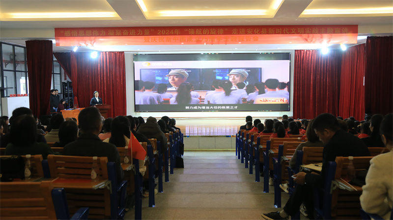本网讯 11月19日,“感悟思想伟力 凝聚奋进力量”——2024年“领航的旋律”走进安化县新时代文明实践中心主题宣讲暨庆祝中华人民共和国成立75周年主题报告会在安化县第一芙蓉学校举行。县委常委、宣传部部长廖小甫出席并宣布仪式启动。 本次宣讲分为旗的指引、梦的感召、路的拓展、力的源泉、美的交响五个篇章,宣讲人通过视频、音乐、舞蹈等多种形式,生动展现了中国共产党的光辉历程和伟大成就,以及新时代中国特色社会主义的发展成就。 “五星红旗迎风飘扬,胜利歌声多么响亮!”活动在全场嘹亮的歌声中圆满结束。通过此次活动,不仅加深了广大干部群众对中国共产党历史和新时代中国特色社会主义的理解,也激发了大家为实现中华民族伟大复兴而努力奋斗的热情和信心。 据了解,此次活动由益阳市精神文明建设办公室指导,中共安化县委宣传部(县文明办)、安化县教育局、安化县新华书店主办,安化县第一芙蓉学校承办,安化县融媒体中心协办。充分展示了安化县在新时代文明实践中的积极探索和显著成效。 县教育局党组成员、副局长刘周明参加活动并致辞,县直单位分管领导、各乡镇宣传委员、专干、学校师生代表共220人参加。 初审初校:万扬 复审复校:蒋国庆 终审终校:蒋军