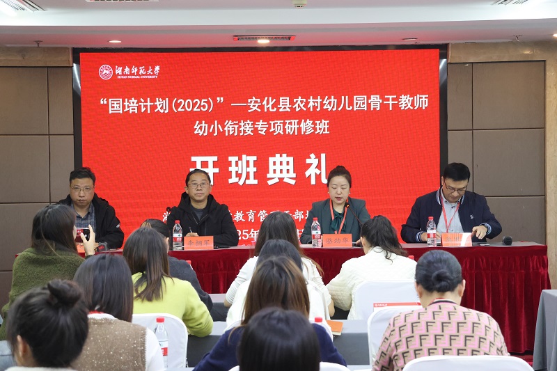 本网讯 11月2日,由湖南师范大学承办的“国培计划(2025)”——安化县农村幼儿园骨干教师幼小衔接专项研修班在长沙正式开班。来自安化县的50名骨干教师参与此次为期7天的专项研修,共同聚焦幼小衔接的专业提升。 开班典礼上,湖南师范大学相关负责人骆劲华、陈甲元与安化县教师发展中心主任李拥军等出席并致辞。骆劲华提出期许,希望参训教师主动转变角色,敞开心扉参与研讨,在思想碰撞中激发智慧,在交流互动中凝聚共识,切实提升专业能力。 李拥军强调,此次培训是提升县域学前教育质量的重要契机,期望骨干教师珍惜机会、学以致用,将所学知识带回工作岗位,发挥示范引领作用,推动区域内幼小衔接工作的科学开展。 据悉,本次研修将围绕幼小衔接的政策解读、课程设计与教学实践,通过专家讲座、案例研讨、实地观摩等形式,全方位助力教师专业成长。 参训教师纷纷表示,将以饱满的热情投入学习,积极探索幼小衔接的有效策略,为安化县农村幼儿的全面发展和顺利入学贡献力量。 初审初校:田 源 复审复校:张艾男 终审终校:李拥军