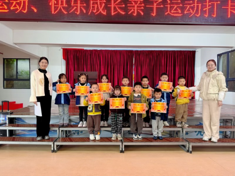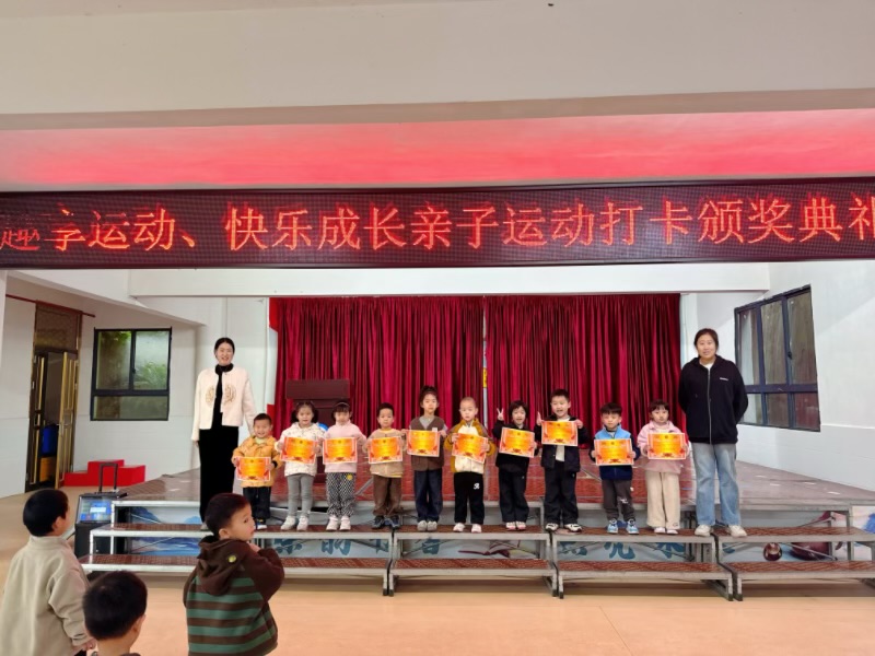 本网讯 11月11日,东坪镇黄沙坪幼儿园内欢声笑语、活力涌动,“亲子运动打卡颁奖典礼”在全体师生共同见证下隆重举行。 为切实推动体育精神融入幼儿日常生活,活动初期,幼儿园通过公众号、班级群等多渠道发布《亲子运动打卡倡议书》,明确“每日运动、亲子陪伴、持续记录”三大核心目标。活动设计契合《3——6岁儿童发展指南》健康领域的要求,通过趣味任务,激发幼儿参与热情。 颁奖典礼上,蒋霞园长以“运动是探索世界的钥匙”点明活动内核:“14天的坚持不仅锻炼了体魄,更培养了毅力与合作精神。每一张奖状背后,都是家庭与幼儿园爱的合力。”致辞后,典礼进入高潮环节——颁奖仪式。 中小班幼儿和大班幼儿获颁“活力小健将”奖,表彰其积极参与的态度,嘉奖其持之以恒的意志。 从14天打卡到季度运动,黄沙坪幼儿园正以“小坚持”撬动“大成长”。当孩子们在颁奖礼上高举奖状绽放笑容时,体育精神早已超越赛场,化作伴随他们探索世界的永恒能量。 初审初校:刘韵琴 复审复校:蒋霞 终审终校:刘颖