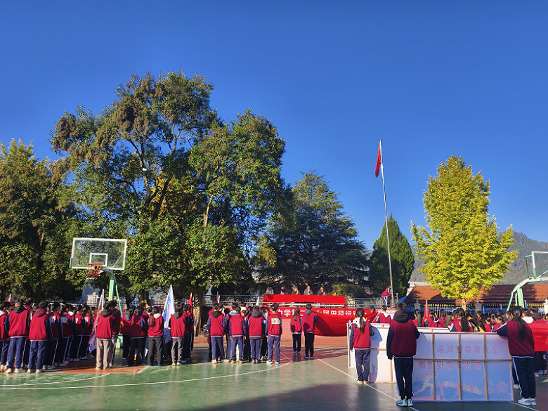 金秋送爽,彩旗飞扬。11月19日,古楼乡中学以“深化五育并举,打造活力校园”为主题,隆重举行第27届田径运动会开幕式。全校师生齐聚运动场,共同见证了一场力与美、青春与激情交织的体育盛会。 开幕式在激昂的入场式中拉开帷幕。国旗方阵步伐铿锵,标语方阵意气风发,彩旗方阵五彩斑斓,充分展现了校园生活的丰富多彩与学子们的蓬勃朝气。各班级运动员方阵依次经过主席台,2301班“少年负壮气”的豪情、2302班“青舟无惧万重山”的斗志、2501班“青春如火,超越自我”的锐气,七个班级无不彰显着古楼乡中学学子团结奋进、阳光自信的精神风貌。 庄严的升国旗仪式后,中学校长彭忠明致开幕词,勉励运动员发扬拼搏精神。裁判员代表与运动员代表先后庄严宣誓,承诺将恪守“公平、公正、公开”的原则,赛出风格、赛出水平。 随后的开场表演精彩纷呈,将现场气氛推向高潮。2302班以温暖的歌声展望《我们的明天》,又以活力四射的舞蹈串烧点燃全场;2303班的《胡巴摇》充满欢乐童趣;2401班用《加油!Amigo》为运动健儿呐喊助威;2402班的《胜利之舞》和2501班压轴登场的《We Rock》,则以铿锵的节奏展现了青春的自信与力量,完美诠释了“我们超棒”的拼搏宣言,充分体现了学校“五育并举”的育人成果。 最后,中心学校校长夏丁然郑重宣布运动会开幕。相信全体运动员必将在接下来的赛程中挥洒汗水、挑战自我,尽情绽放青春风采,共同谱写古楼乡中学阳光体育的新篇章! 初审初校:李琪 复审复校:彭忠明 终审终校:夏俏