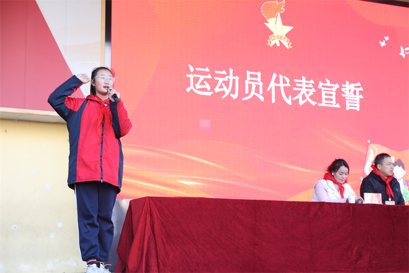 紧接着,大会进入庄严的宣誓环节。裁判员代表谌稳健老师郑重宣誓,承诺将恪守体育职业道德,严格遵守竞赛规则,公正执裁,确保比赛公平、公正、公开地进行。随后,来自26中队的运动员代表张昕欣同学庄严宣誓,表示将尊重对手、尊重裁判,顽强拼搏,展现芙蓉学子的良好风貌。