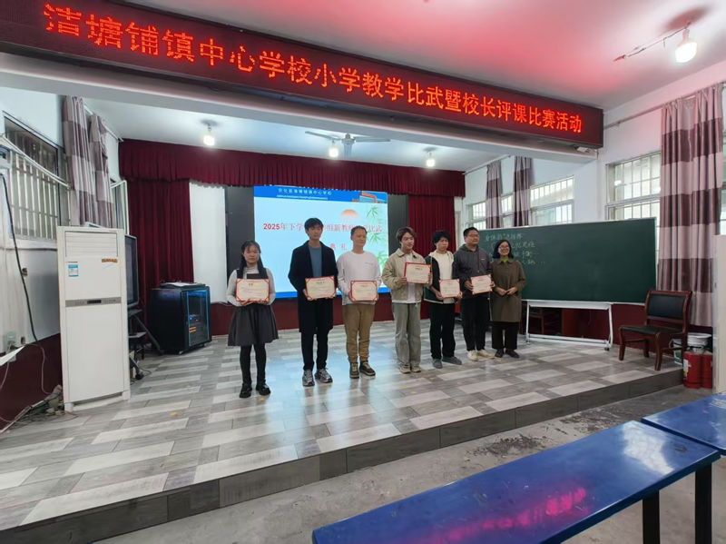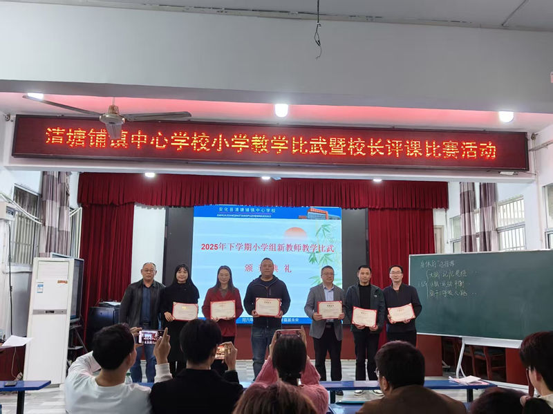 本网讯 11月6日,清塘铺镇中心学校小学组新教师教学比武暨校长评课比赛同步举行,来自第一完小、鱼水学校、回春完小的6位新教师同台竞技各展所长,呈现了一场精彩纷呈的教学盛宴。 活动涵盖英、数、语、科四大学科,新教师各展所长:吴家豪老师带来三年级数学《分数的初步认识》,他借助月饼、长方形纸片等直观教具,将抽象的数学概念具象化,帮助学生轻松理解分数的意义;吴俊老师的英语课堂互动趣味十足,龙昊晟老师的数学教学凸显思维训练,邹丽娜老师的语文课堂深挖文本内涵,蒋平宝老师的科学课激发学生探索兴趣,充分展现了扎实的专业素养。李睿城老师的五年级数学《可能性》,通过摸球实验、转盘游戏等趣味活动,让学生在动手操作中感受概率的奥秘;每节课后,各校校长从教学目标、环节设计、师生互动等维度精准点评,既肯定亮点又提出优化建议,展现了深厚的教研功底。 据了解,第一完小教师邹丽娜、回春完小教师龙昊晟、蒋平宝荣获教学比武一等奖。中心学校领导表示,双重赛事为新教师搭建了成长平台,也提升了校长团队的教研指导能力,将推动区域教育教学质量持续提升,深耕课堂教学,为清塘铺镇小学教育事业的发展注入新的活力。 初审初校:熊 敏 复审复校:刘新世 终审终校:谭送兵