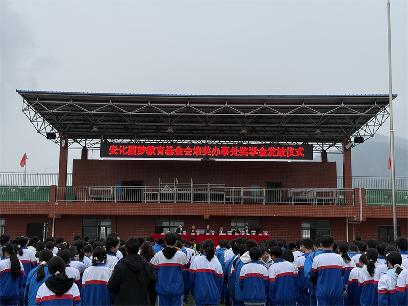 本网讯 11月6日,安化圆梦教育基金会梅城培英办事处奖学金颁发仪式在梅城镇东华中学田径场举行。仪式由东华中学党支部书记、校长李兴家主持,基金会代表、学校行政领导、各年级家委会会长及全校师生共同参与。 李兴家介绍了出席嘉宾,并对安化圆梦教育基金会梅城培英办事处对东华中学教育事业的支持和学生成长的关怀表示感谢。在该基金会梅城培英办事处秘书长谭良玉、干事蒋友朋,该校部分行政等嘉宾见证下,25名获奖学生依次上台领奖。他们精神饱满,从颁奖嘉宾手中接过荣誉证书,台下师生报以热烈掌声。随后,25届学生代表龚子涛他表达了对基金会、学校和老师的感激,分享了学习心得与成长感悟,并表示会将荣誉转化为前进动力,努力学习,回报社会。 安化圆梦教育基金会梅城培英办事处秘书长谭良玉讲话。他肯定了东华中学育人成果,赞扬了获奖学生的勤奋精神,介绍了基金会支持教育、助力学生圆梦的宗旨,鼓励学生树立远大理想,珍惜时光,刻苦学习,成为国家栋梁。 初审初校:曹靖阳 复审复校:肖智 终审终校:李兴家