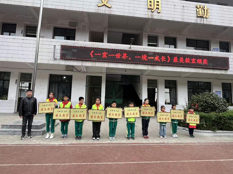 本网讯 10月24日,江南镇完小开展“最美教室”评比活动,全校30个班级积极参与,用巧思与双手将教室装扮成充满童趣与温度的“最美家”。 本次评比围绕“环境整洁、文化氛围、创意特色、学生参与”四大维度展开。走进各班教室,风格各异的布置让人眼前一亮:有的班级以“书香浸润”为主题,开辟了“图书角”,书架上整齐摆放着学生捐赠的书籍,墙面贴着读书心得与名言卡片;有的班级聚焦“成长记录”,后墙展板上贴满了学生的绘画作品、手工制作和进步奖状,每一张都承载着成长的足迹;还有的班级融入“绿色生态”理念,窗台上摆满了学生培育的多肉、绿萝,既美化了环境,又培养了责任感。值得一提的是,所有布置均由师生共同设计、动手完成,从墙面彩绘到角落装饰,处处体现着班级特色与集体智慧。 评比过程中,评委组逐班检查打分,最终选出“最美教室”10个班级。当获奖班级代表接过获奖牌,班级里响起真真呼声。 校长姚志军表示:“‘最美教室’不仅是视觉上的美观,更是班级精神的体现。这次活动让学生从‘旁观者’变成‘建设者’,既提升了动手能力,也增强了班级凝聚力。” 初审初校:罗明亮 复审复校:邱羽晨 终审终校:姚志军