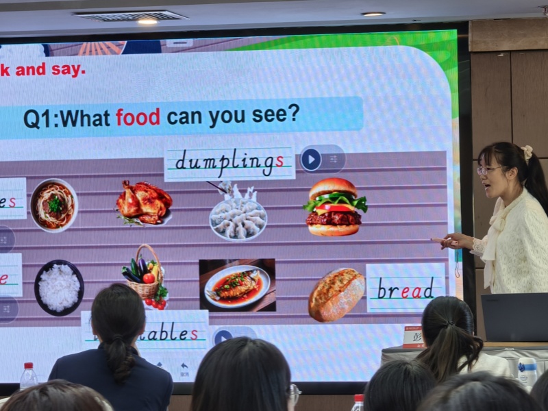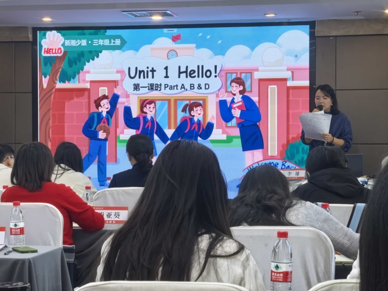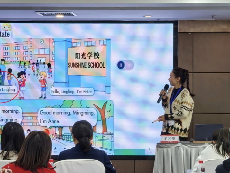 本网讯 10月23日,2025年小学英语国培项目开展小组教学片段汇报活动。五大小组立足不同课例,紧扣核心素养培育,将情景设计、AI赋能、分层教学等国培所学融入课堂,各展所长、亮点频现。 国培一组:三年级上册Unit4《This is my family》——以“family”为主线,情景教学显温度 一组以“family”为核心主线,深度运用课本真实情景展开教学。课堂开篇依托教材中“介绍家庭成员”的场景,引导学生认读“father”“mother”等词汇,通过课本插图还原家庭互动画面,让语言学习贴合教材语境;随后延伸设计“家庭合照”“模拟家庭对话”等实践活动,将课本情景与学生生活联结;最后聚焦“family”的实际意义,通过“分享家庭温暖故事”“书写家庭祝福”环节,让学生在语言运用中理解“家庭”的情感内涵,实现语言知识与情感认知的双重收获。同时巧用AI语音测评工具实时纠音,助力词汇掌握更精准。