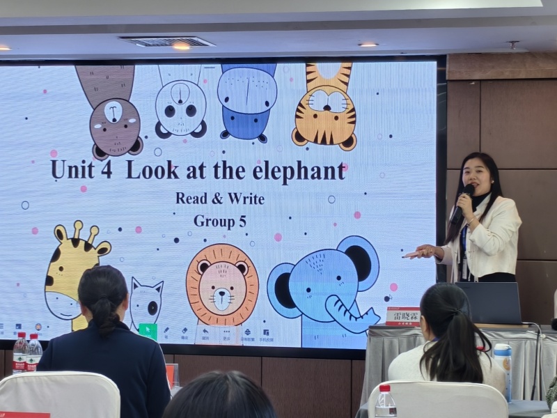 国培五组:四年级上册Unit4《Look at the elephant》——读写结合+技术赋能,让观察课堂“新”起来 五组践行“先进理念+创新手段”教学思路,以“动物观察”为主线,设计“读文本描述—写观察记录—绘观察简图”任务,实现读写紧密结合;借助AI动物科普课件将抽象特征转化为直观画面,辅助理解与表达,同时提供“基础朗读”“创意写作”等差异化任务,关注学生个性发展;课后反思明确,针对“互动深度”“时间分配”提出优化方向,展现持续改进的专业态度。