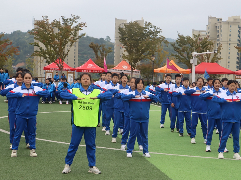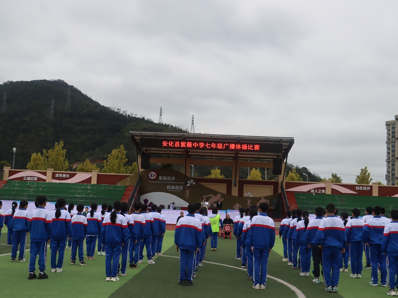 本网讯 10月21日,安化县紫薇中学七年级全体师生齐聚田径场,迎来了备受期待的广播体操比赛。