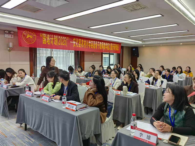 本网讯 10月20日上午,“国培计划(2025)”安化县农村小学英语骨干教师教学能力提升研修班全体学员,有幸听取了省教研员夏春娥老师的专题讲座《新课标视域下的新教材教学设计与实施建议》。 夏春娥老师强调,教师成长的核心在于改变与格局。她指出,教师必须从思想上转变,树立清晰的教学理念,避免固守常规思路,否则难以进步。教师的格局体现在“课程意识”上,需深度思考“教什么”、“为什么教”、“教给谁”以及“怎么教才对学生发展最好”,始终从育人角度出发,全盘规划教学。 在专业发展方面,夏老师认为读书是最好的备课,教师自身不读书是可怕的。她重申,教学的终极目标是让学生真正能用英语说、读、写、交流,实现语言的实际应用。讲座尾声,夏老师以“感动不了自己的课,永远感动不了学生”勉励学员,强调教学设计必须先打动自己。 初审初校:龚赞青 复审复校:曹新生 终审终校:陈鹏飞
