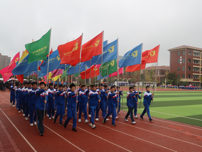 伴随着激昂的《运动员进行曲》,国旗方阵率先入场,护旗手们步伐铿锵,目光如炬。随后,校旗方阵、会徽方阵、彩旗方阵依次通过主席台,紧接着是身着统一服装的裁判方阵,他们以严谨姿态彰显公平执裁的承诺;最后,由40个班级组成的运动员方阵依次亮相,他们精神抖擞、口号嘹亮,用创意与热情诠释青春活力。