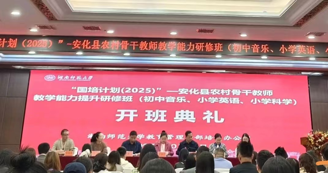 开班典礼现场,湖南师范大学骆劲华老师首先致辞欢迎全体参训教师,同时对湖南师范大学进行了简要介绍,让老师们对承办方有了更清晰的认知。随后,金鸡完小贺老师作为学员代表发言,表达了参训教师们对此次研修的期待与认真学习的决心。安化县教师发展中心李拥军主任在发言中,一方面对此次研修的组织方表示感谢,另一方面围绕“如何做‘好老师’、培养什么样的学生”进行了深刻阐述,同时强调参训教师要珍惜机会、遵守培训纪律与要求,力求学有所成、学以致用。现场氛围庄重而热烈,为此次研修拉开了良好序幕。 专家讲座一:教育家精神引领教师专业化成长