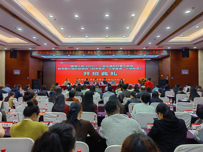本网讯 10月19日,“国培计划”安化县小学英语、小学科学、初中音乐教师研修开班仪式在长沙美雅斯国际酒店会议厅举行。本次研修由湖南师范大学培训项目部主办,旨在以教育家精神为引领,全面提升农村骨干教师的专业素养与教学能力,为基层教育高质量发展注入新动能。 开班仪式上,湖南师范大学教育管理培训办公室主任骆劲华致辞,对参训学员表示热烈欢迎,并介绍了本次培训的课程设计与研修目标。安化县教师发展中心主任李拥军在讲话中勉励全体学员珍惜学习机会,深化教育情怀,将所学所思转化为育人实践,真正成为“点燃乡村教育希望的火种”,落实“为党育人、为国育才”的使命担当。 在随后的首场专题报告中,湖南师范大学陈牛则教授作《教育家精神引领下的教师职业生涯与专业化成长》专题讲座。陈教授围绕教育家精神的核心内涵,结合实例阐述了教师职业发展的路径与策略,强调新时代教师应具备“启智润心、乐教爱生”的专业素养与家国情怀。讲座内容深入浅出,现场学习氛围浓厚,学员们专注聆听、认真记录,积极参与互动交流。 “陈教授的讲座既有理论高度,又有实践指导意义,让我对教师职业有了更深的认同感和方向感。”来自安化县东山完小的杨老师在课后分享中表示,“这次培训为我们农村教师打开了视野,真是受益匪浅。” 据悉,本次研修班将持续数日,课程设置涵盖理论讲座、名校访学、课例观摩与研讨交流等多种形式,着力推动教师在理念更新、方法创新与实践能力上实现全面提升。学员们一致表示,将以此为契机,潜心学习、互促共进,努力将培训成果有效运用于教学实践中,为夯实农村基础教育根基贡献力量。 初审初校:杨静 复审复校:龚赞青 终审终校:曹新生