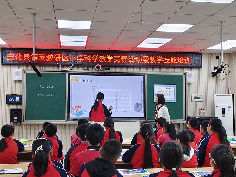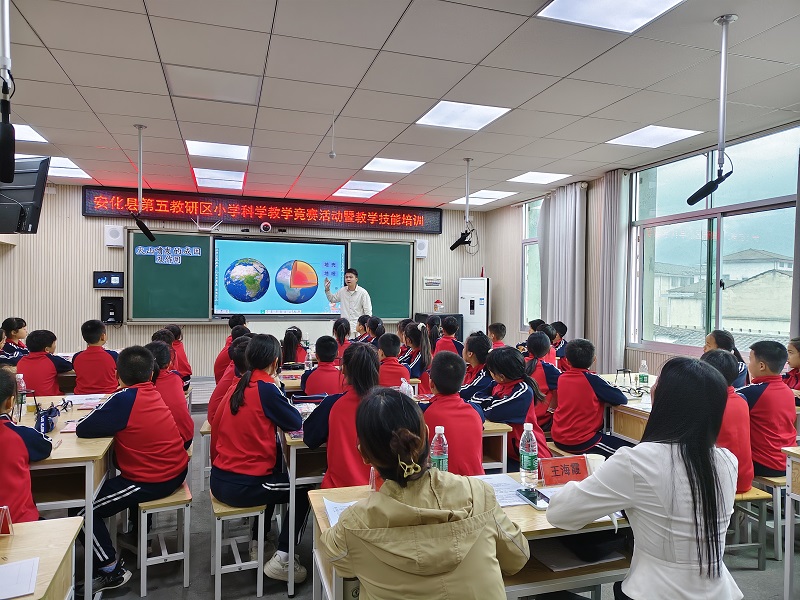 本网讯 10月16日,安化县第五教研区小学科学教学竞赛暨技能培训活动在小淹镇完小五楼云录播室圆满落幕。来自滔溪、小淹、江南、田庄四所学校的教师同台竞技,呈现了四节特色鲜明的科学课。 竞赛中,教师们将科学知识与生活场景深度融合,课堂亮点频出。滔溪镇李靖老师以“糖块快速化水”为切入点,通过对比实验引导学生探究《加快溶解》的规律;田庄镇李雅老师创新教学形式,邀请学生手拉手模拟“人体地球”,通过缓慢旋转直观呈现地球自转,破解《谁先迎来黎明》的知识难点。 江南镇王泽昊老师的《火山喷发的原因及作用》一课极具互动性。他组织7个小组用土豆泥搭建“火山山体”、以番茄酱模拟“岩浆”,虽因实验条件限制未达预期效果,但学生探索热情不减,王老师借此分析原因、讨论火山利弊,让知识更易理解。小淹镇刘青老师则从“斜坡搬东西”的生活场景切入,带领学生用不同长度木板搭斜面、用弹簧秤测拉力,自主发现“斜面越长越省力”的原理。 活动尾声,安化县第五教研区区长谌战雄肯定了教师们的教学创新,称赞课堂有效激发了学生探究欲与培养了动手能力,并为获奖教师颁奖。小淹镇中心学校副教导主任刘竞花表示,此类活动为年轻教师提供了成长平台,也为学生打开了科学视野,未来将持续支持这类教研活动。 此次竞赛不仅展现了区域科学教学成果,更让学生感受到科学的魅力。2302班雷沐源说:“学到的加快溶解方法,以后泡药都能用。” 初审初校:沈秀文 复审复校:陶 仁 终审终校:陶武军