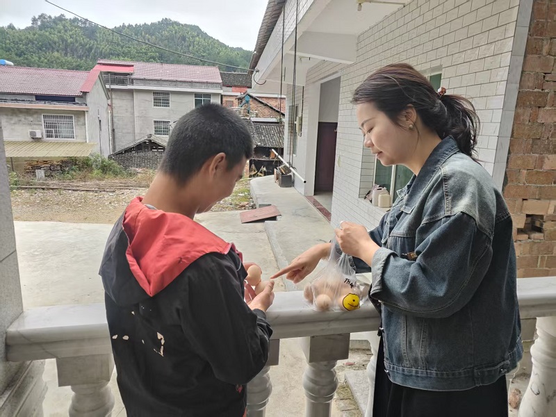 本网讯 10月14日,梅城镇东华完小送教老师文毅、曹娅来到了特校学生张同学家,进行10月份送教上门工作,为他送去了知识与温暖。 据悉,张成接因幼年时感冒发烧导致大脑损伤,无法到学校正常就读,现已14岁,一直不开口说话,和别人交流都是用微笑代替。 车子刚刚停下,张成接两兄妹面带着微笑,心中充满了喜悦,赶紧凑上前来,和老师一同走进家里。送教老师和家长进行简单的交流后,试着让学生去学着数数(数鸡蛋)、试着去叫爸爸、妈妈、爷爷、奶奶,但他总是笑而不答,不愿开口。长期以来的自闭需要更多时间来弥补,需要不断地训练。 短暂的相聚,他们追着老师到车子旁相送,挥手告别。曹娅说“送教上门,送去的不仅仅是知识与技能,更是一份沉甸甸的希望与关怀。”