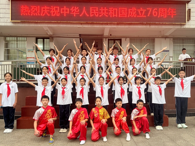 本网讯 东坪镇中学于近日开展了以“青春献礼祖国”为主题的系列活动。全校师生积极参与,共同谱写了一曲爱国主义的华美乐章。 9月28日,在该校党支部的领导、团委的组织下,德育副校长姚勇和学生处主任王强带队,九年级团干部与八年级中队长整齐列队,前往红色安化党史馆开启实践之旅。七年级5名“红领巾讲解员”身着校服、佩戴红领巾,用清脆而庄重的声音,将安化本地烈士的英勇事迹、革命先辈的奋斗历程娓娓道来——从战火纷飞的峥嵘岁月,到新时代家乡的发展变迁,每一段故事都让在场同学驻足倾听,不少人还拿出笔记本认真记录,眼神中满是崇敬与动容。 9月29日,该校师生齐聚大操场,隆重举行迎国庆升旗仪式。五星红旗冉冉升起,嘹亮的歌声响彻校园,每一个音符都饱含着对祖国的深情。随后,党员教师夏辉以《以青春之名,绘就爱国底色》为题讲述红色故事,带领同学们用最铿锵的誓言宣告东中学子的青春担当;2514班罗宜航同学以《以吾辈之青春,让五星长悬》为题进行国旗下演讲,她柔和有力的话语道出了新时代中学生的责任与担当。师生同参与的国庆献礼节目《祖国万疆》更是将活动推向高潮,当“红日升在东方”的旋律响起,爱国之情在歌声与掌声中传递。当天下午,广播站以“双节同辉,家国同暖”为主题播音,祝愿祖国山河锦绣,祝愿人间家家团圆。 此次系列活动,不仅丰富了校园文化生活,更在学生心中播下了爱国的种子。学生纷纷表示,通过参与这些活动,更加深刻地体会到了爱国的意义,增强了民族自豪感和使命感。 该校负责人表示,此次活动得到了全体师生的积极响应,达到了预期的教育效果。未来,学校将继续开展丰富多彩的德育活动,培养学生的爱国情怀和综合素质,为祖国的美好未来培养更多优秀的人才。 初审初校:陶宇 复审复校:谢明智 终审终校:邓峥