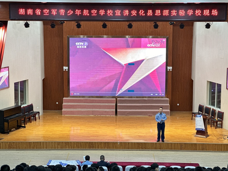本网讯 9月25日晚,空军招飞局广州选拔中心一行来到安化县思源实验学校,为初三全体男生带来了一场别开生面的招生政策宣讲会。 宣讲会在激动人心的宣传视频中拉开帷幕。视频生动展示了空军青少年航空学校现代化的教学环境、丰富的学习内容、严谨的作风纪律以及学员们的飒爽英姿。 选拔中心的主讲老师向同学们系统介绍了航空学校的办学性质、培养目标、教学资源以及优惠政策。不仅描绘了成为空军飞行学员的光明前景,也坦诚地说明了需要经历的严格选拔与艰苦训练,鼓励有志青年勇于接受挑战,为梦想奋力一搏。 整场宣讲会内容丰富、气氛热烈。宣讲会结束后,部分家长和学生围在主讲老师身边,咨询相关的问题。 据悉,该校此前已有两名学生被青少年航校录取,学校一直鼓励和支持符合条件的优秀学生报名参加选拔,期待未来能有思源学子翱翔于祖国的蓝天之上! 初审初校:邹辉华 复审复校:李繁荣 终审终校:谢立贤