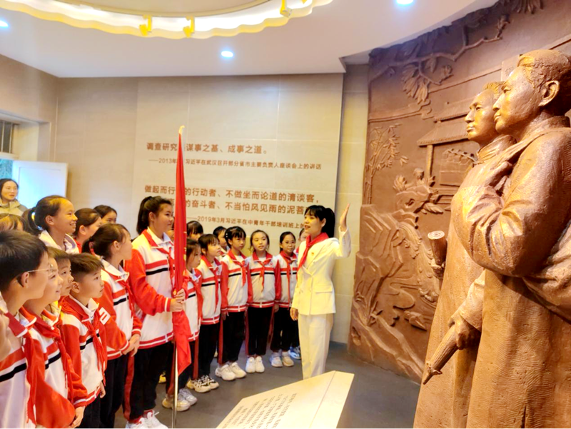 本网讯 党建带队建,红色薪火传。9月24日下午,安化县梅城镇芙蓉学校党支部党员及少先队员代表走进安化一中毛泽东陈列馆,开展“追寻伟人足迹,传承红色基因”主题研学活动。 活动伊始,学校德育处对队员们进行了行前动员与安全教育,着重指出此次参观不仅是一次学习,更是一次精神的洗礼。在安化一中讲解员的带领下,党员教师和队员们秩序井然地步入陈列馆。在一件件实物、一幅幅图片前驻足凝视,通过实物与史料直观感受革命历史,并在陈列馆前重温入队誓词,坚定理想信念。本次活动实现了红色资源与教育实践的有机结合,是“党建带队建”落到实处的一次有效探索。 学校表示,将持续推动党、队育人链条相衔接、相贯通,后续将组织观后感征文、红色故事讲述等活动,持续深化教育效果,让红色基因在党建引领下深深植根于少先队员的心田,引导少先队员从小听党话、跟党走,努力成长为担当民族复兴大任的时代新人。 初审初校:谭媛媛 复审复校:俞泽军 终审终校:彭海鹏
